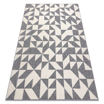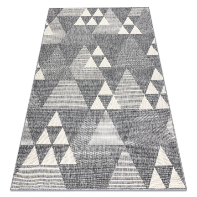 Sznurkowy dywan w odcieniach szarości, odporny na warunki atmosferyczne, idealny na taras i balkon.