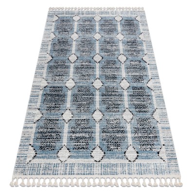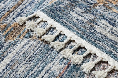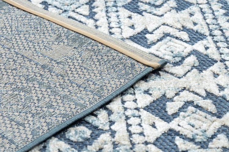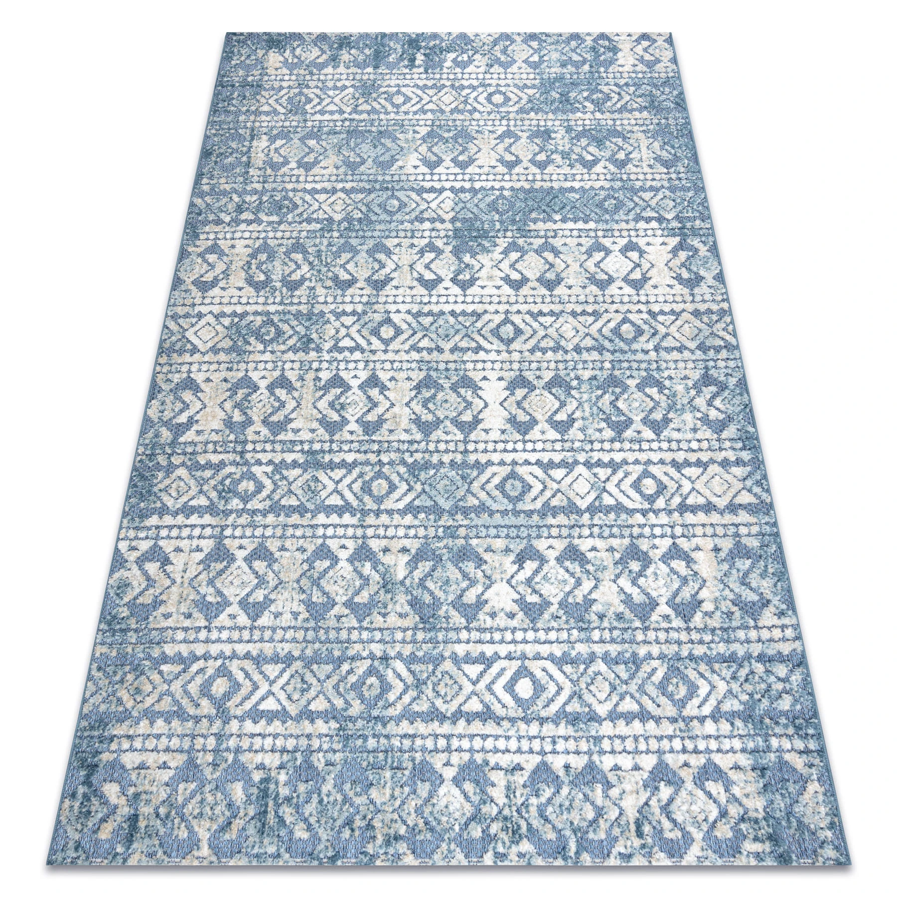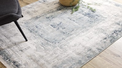 Niebiesko-beżowy dywan z abstrakcyjnym wzorem, który wniesie do salonu spokojną elegancję i subtelny kolorowy akcent.