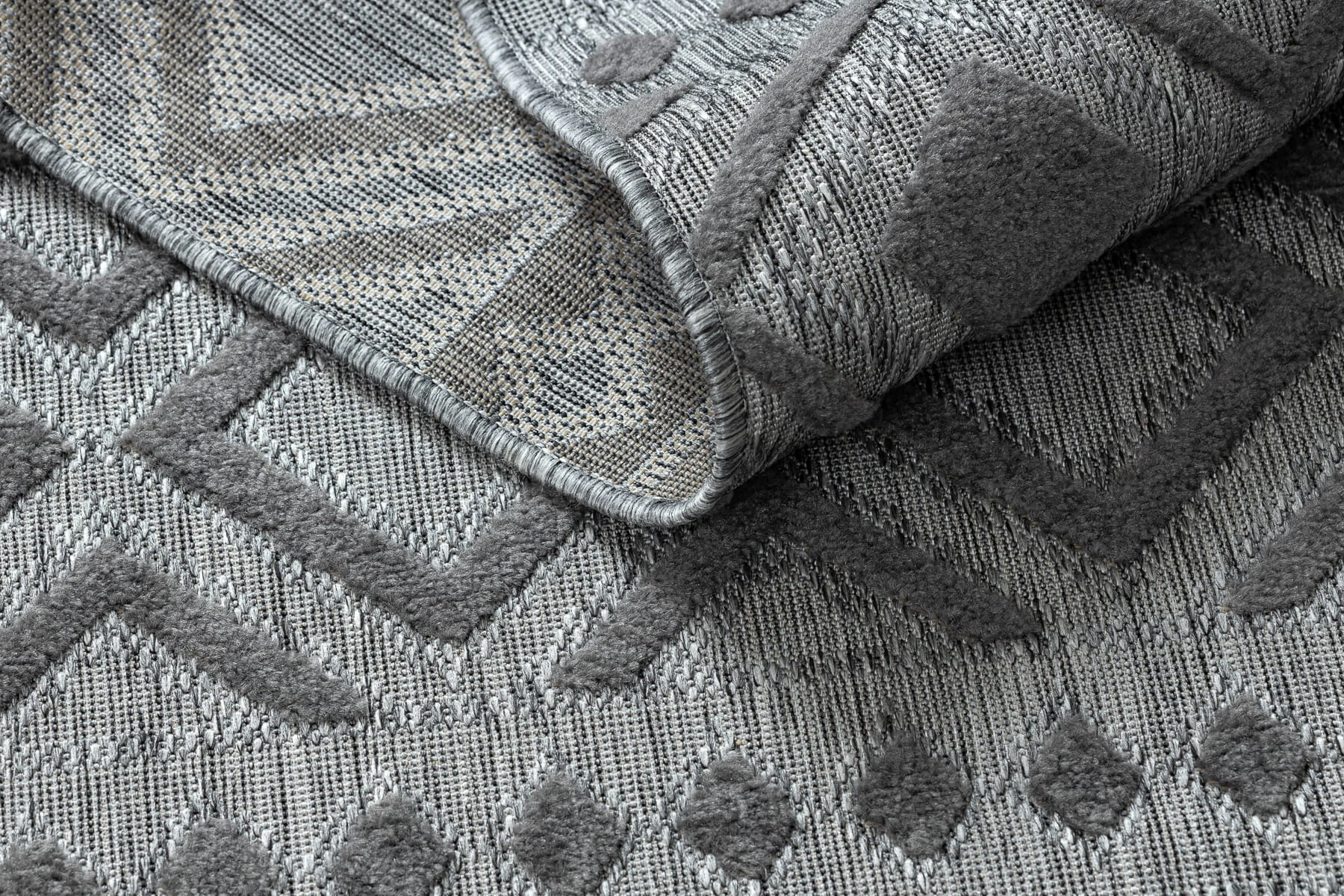 Dywan w odcieniach szarości, odporny na warunki atmosferyczne, idealny na taras i balkon.