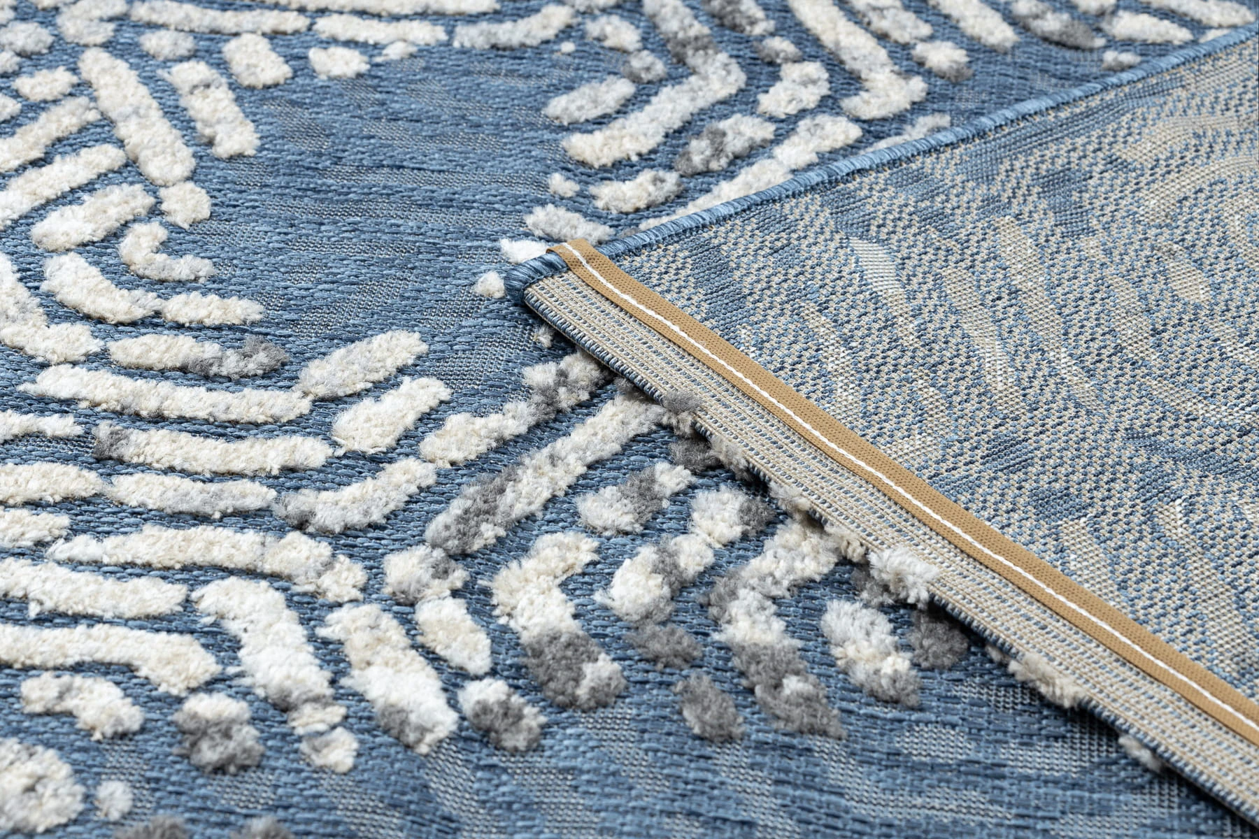 Niebiesko-beżowy dywan z abstrakcyjnym wzorem heksagonów, który ożywi korytarz nowoczesnymi geometrycznymi akcentami.