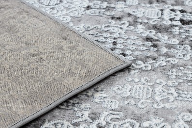 Szaro-beżowy dywan z abstrakcyjnym wzorem, który doskonale wpisze się w nowoczesny salon lub pokój.