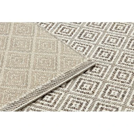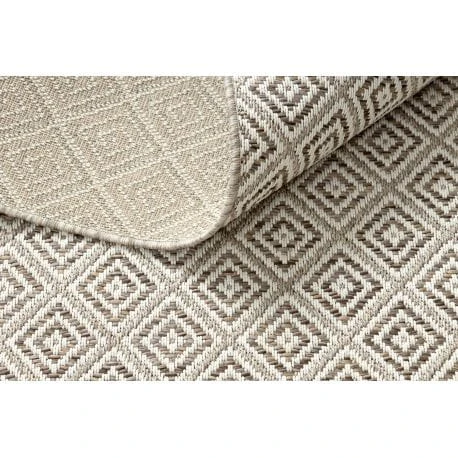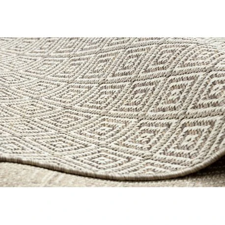 Sznurkowy dywan w odcieniach beżu, odporny na warunki atmosferyczne, idealny na taras i balkon.