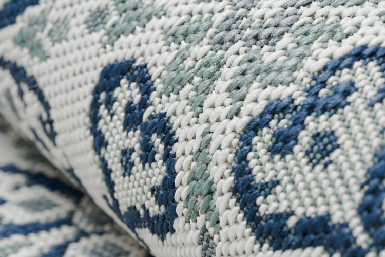 Sznurkowy dywan z delikatnym kwiatowym motywem, odporny na warunki atmosferyczne, idealny na taras i balkon.