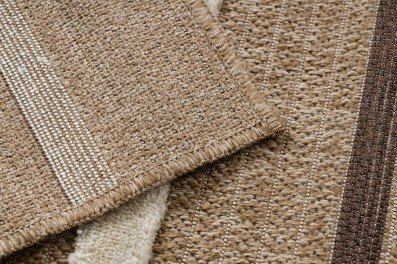 Sznurkowy dywan w odcieniach beżu, odporny na warunki atmosferyczne, idealny na taras i balkon.