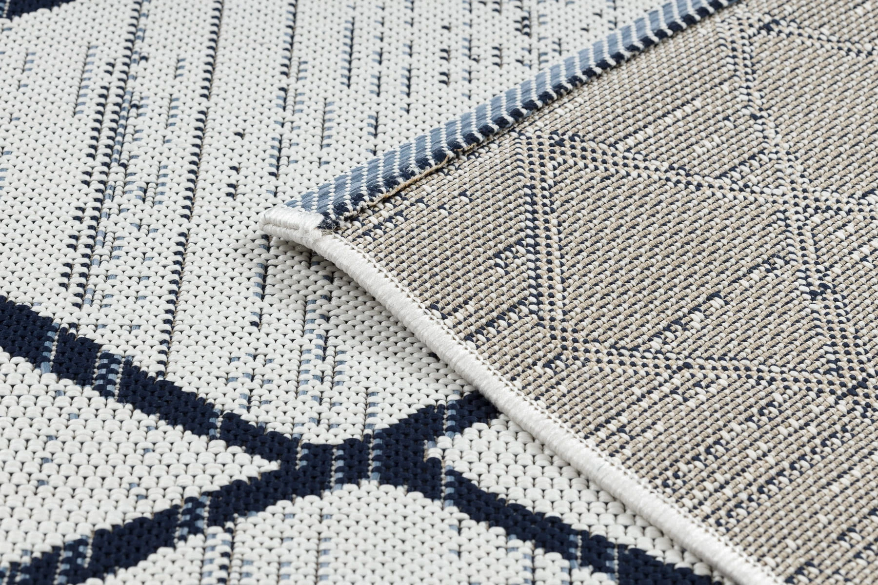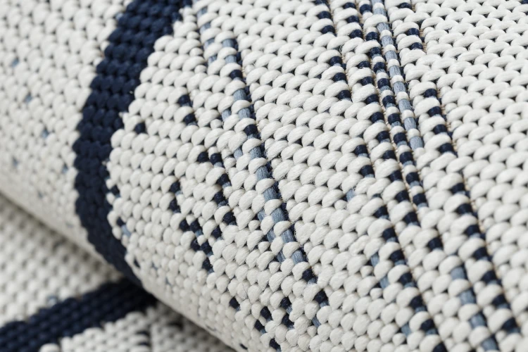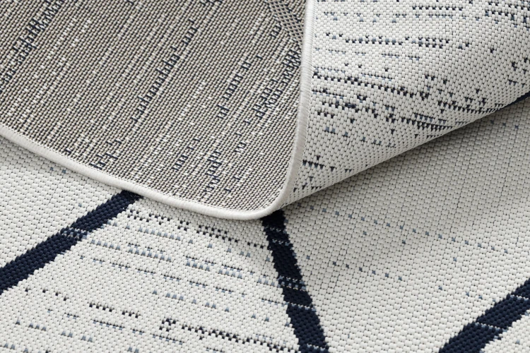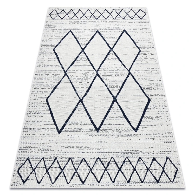 Biały dywan sznurkowy z geometrycznym wzorem rombów i kwadratów, który rozjaśni korytarz i doda mu nowoczesnego charakteru.