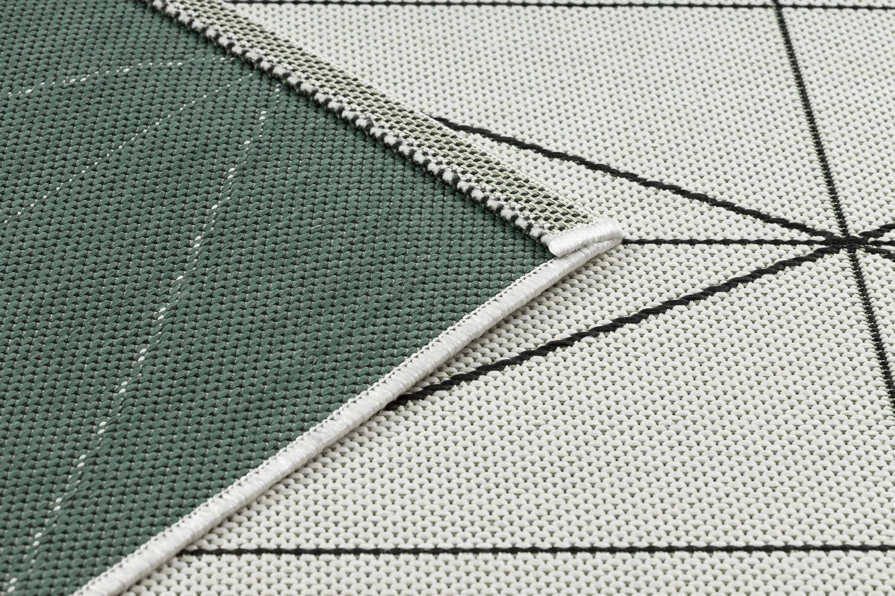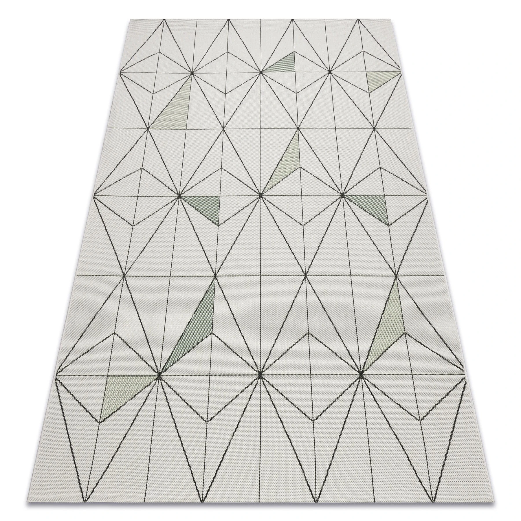 Sznurkowy dywan w odcieniu kremowym z geometrycznym wzorem, odporny na warunki atmosferyczne, idealny na taras i balkon.