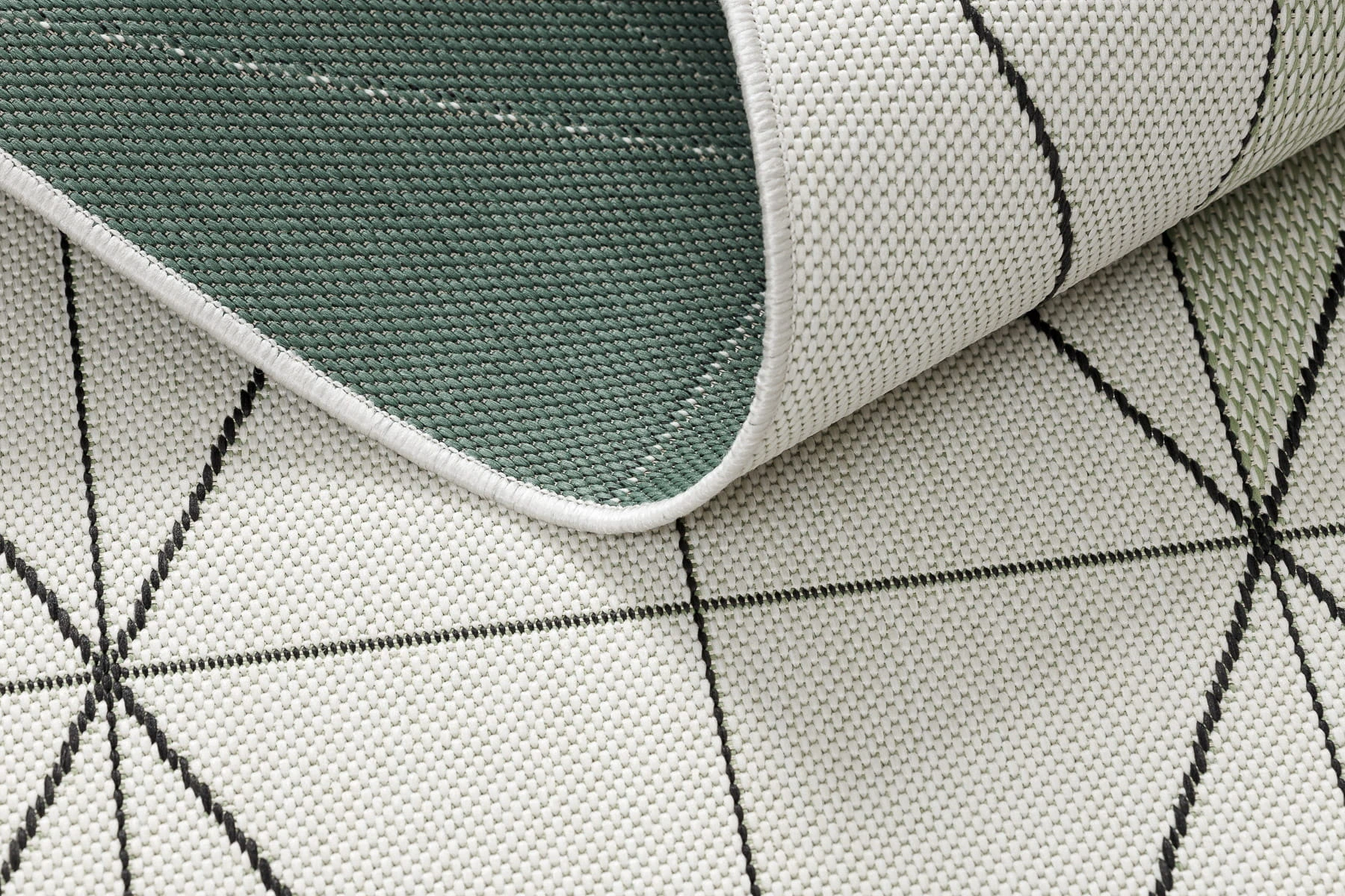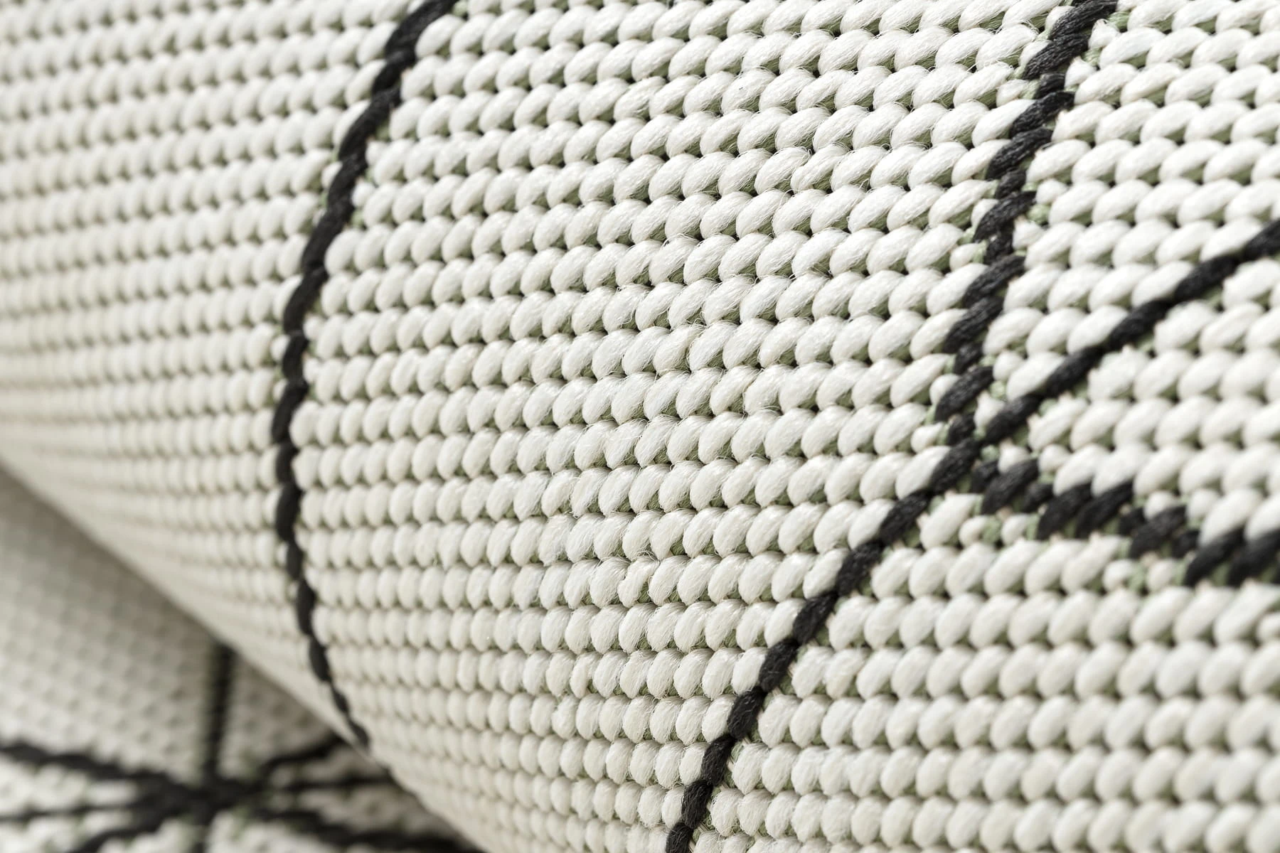 Sznurkowy dywan w odcieniu kremowym z geometrycznym wzorem, odporny na warunki atmosferyczne, idealny na taras i balkon.