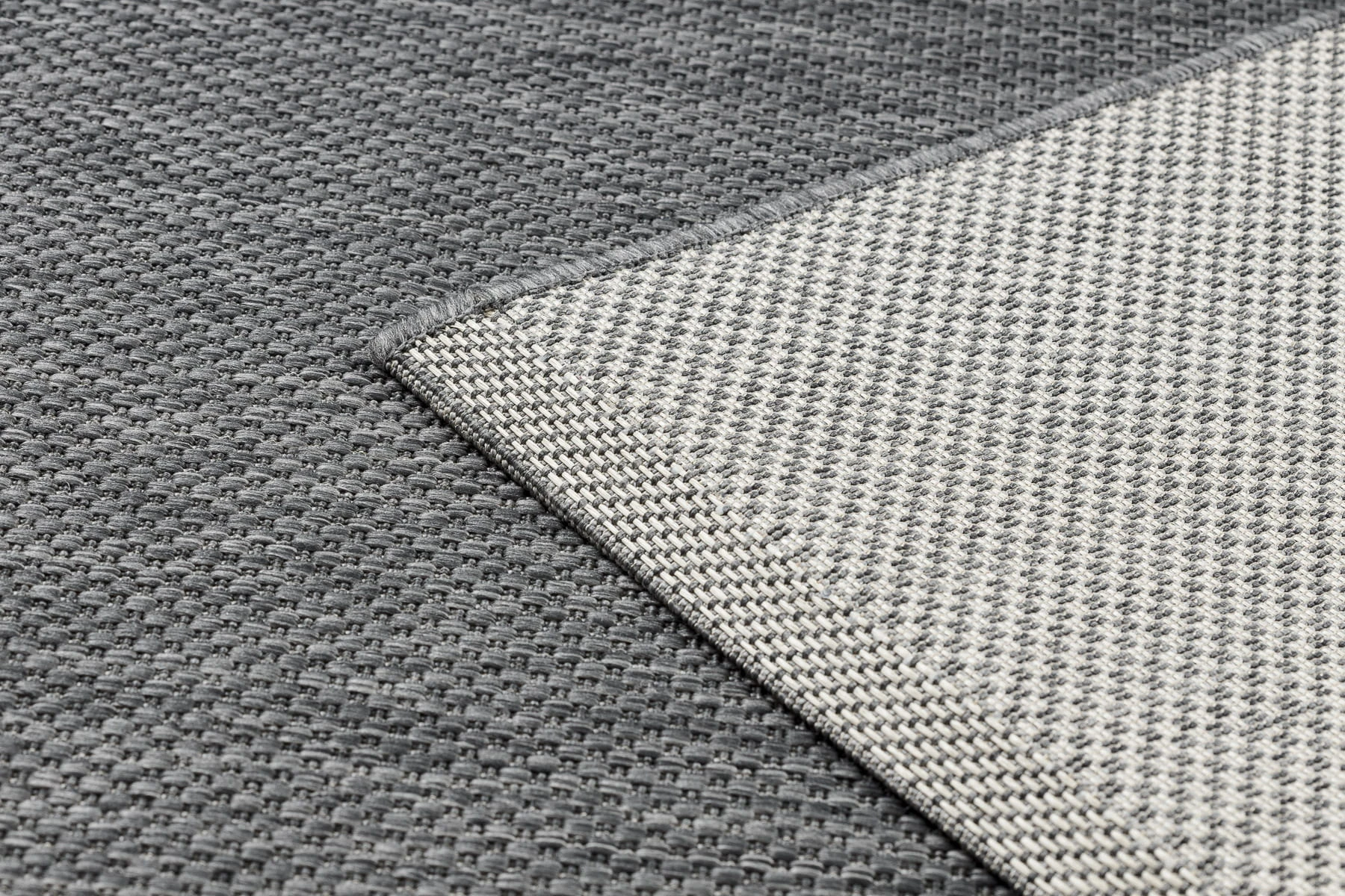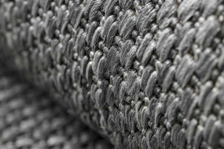 Sznurkowy dywan w odcieniu antracytu, odporny na warunki atmosferyczne, idealny na taras i balkon.