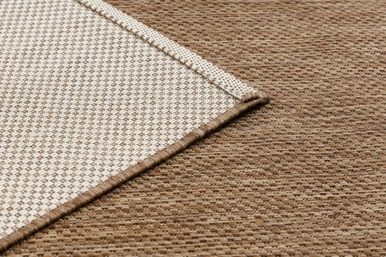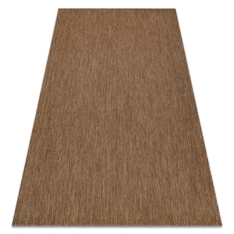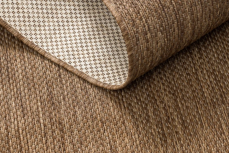 Sznurkowy dywan w odcieniu brązu, odporny na warunki atmosferyczne, idealny na taras i balkon.