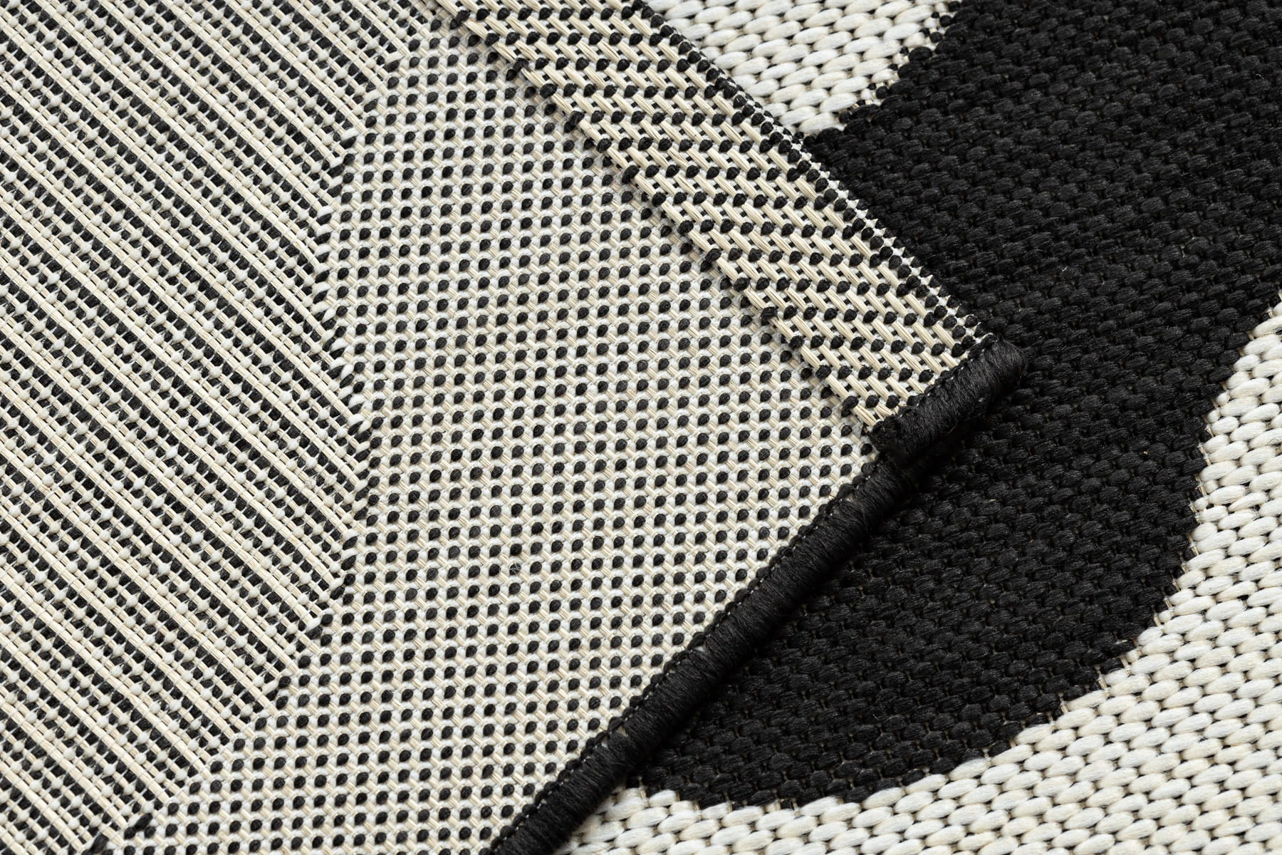 Sznurkowy dywan w kremie i czerni, odporny na warunki atmosferyczne, idealny na taras i balkon.