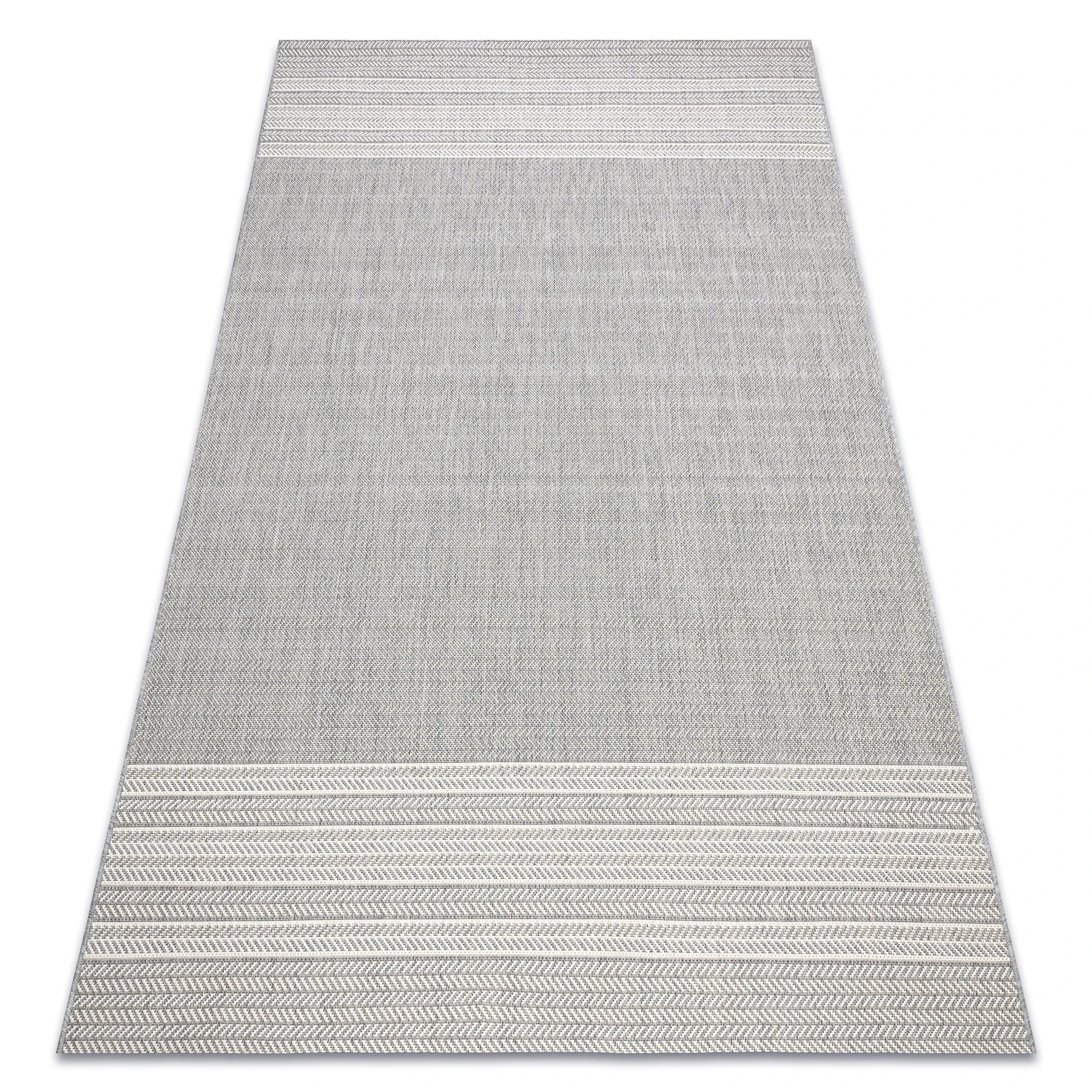 Sznurkowy dywan w odcieniach szarości, odporny na warunki atmosferyczne, idealny na taras i balkon.
