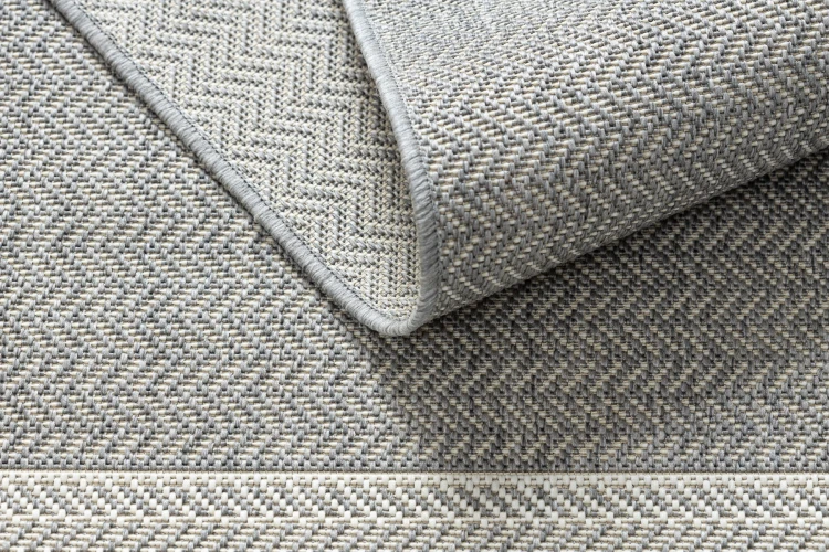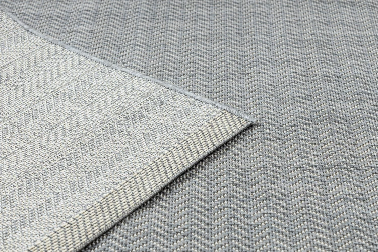 Sznurkowy dywan w odcieniach szarości, odporny na warunki atmosferyczne, idealny na taras i balkon.