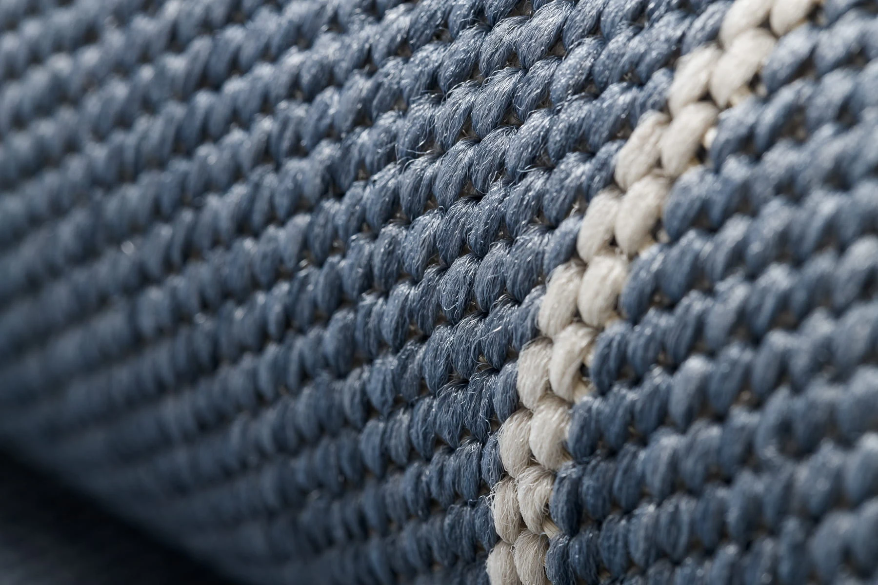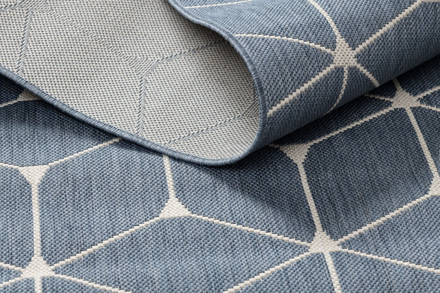 Sznurkowy dywan w odcieniach niebieskiego, odporny na warunki atmosferyczne, idealny na taras i balkon.