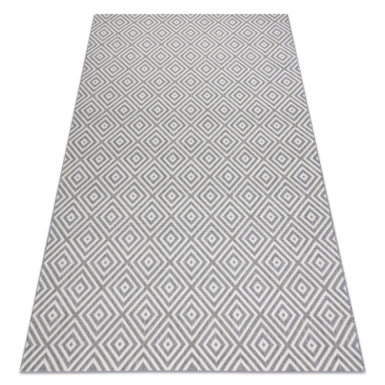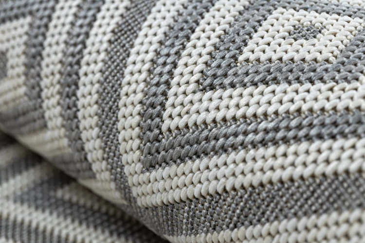 Sznurkowy dywan w odcieniach szarości, odporny na warunki atmosferyczne, idealny na taras i balkon.