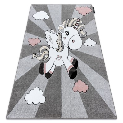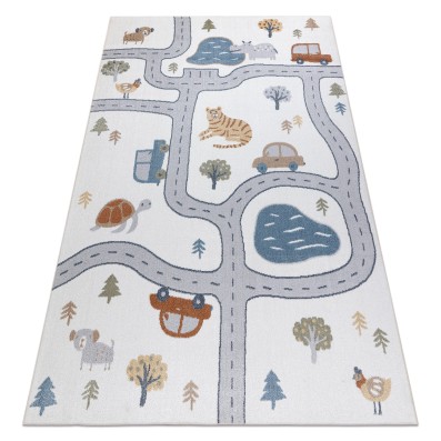 Szary dywan ze zwierzęcym wzorem, który wprowadzi naturalny charakter do korytarza.