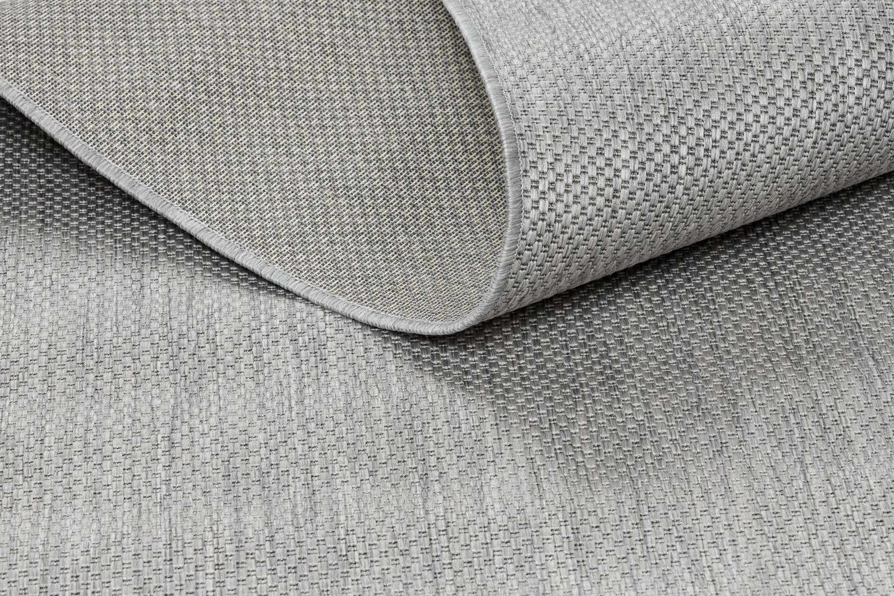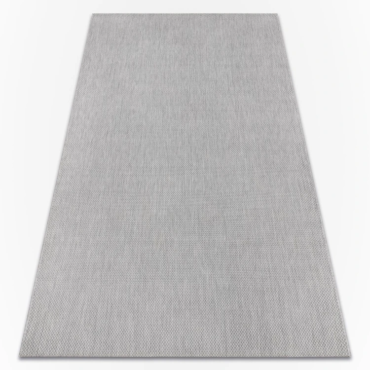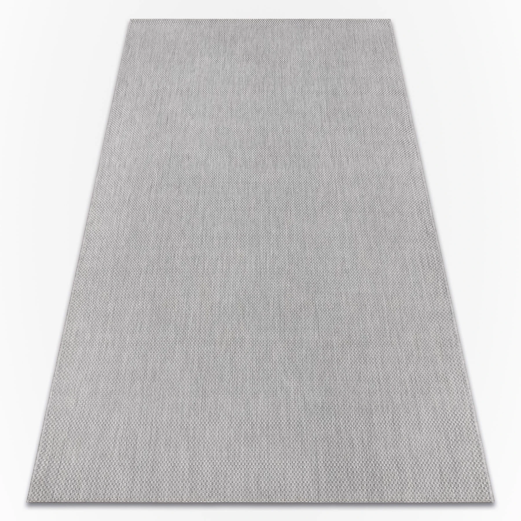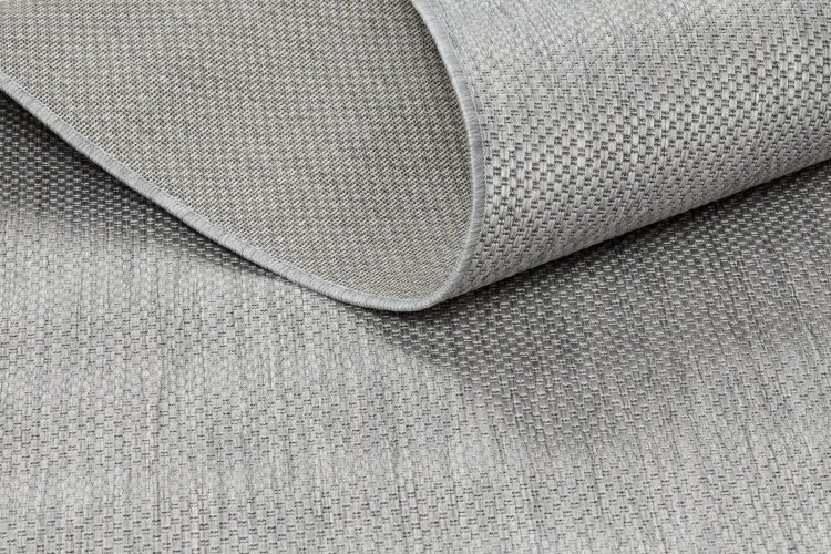 Jednokolorowy szary dywan z sznurkową fakturą, który stworzy spokojną bazę dla korytarza w minimalistycznym stylu.