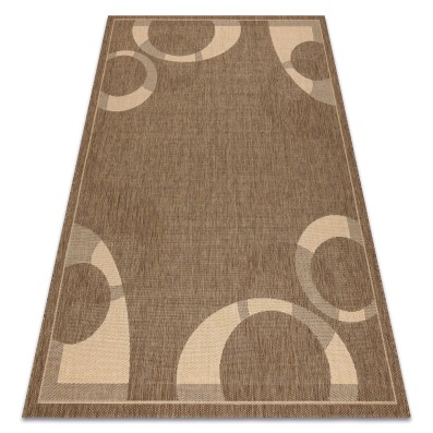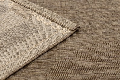 Sznurkowy dywan z geometrycznym motywem trójkątów w odcieniach beżu i szampańskiego, odporny na warunki atmosferyczne, idealny na taras i balkon.