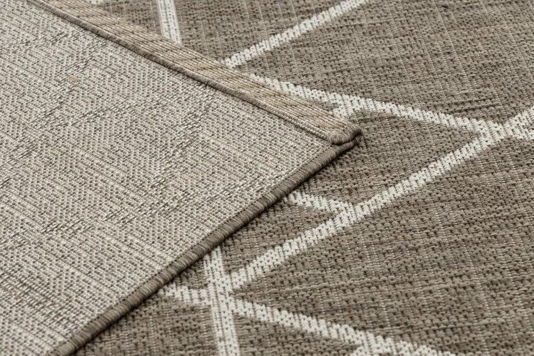 Sznurkowy dywan w odcieniu taupe, odporny na warunki atmosferyczne, idealny na taras i balkon.