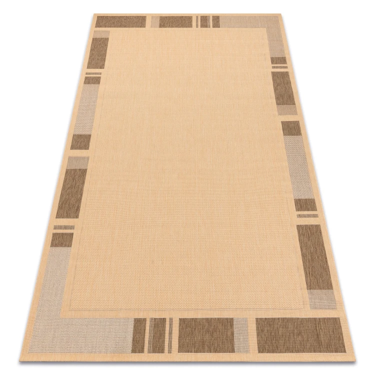 Sznurkowy dywan w odcieniach beżu i brązu, odporny na warunki atmosferyczne, idealny na taras i balkon.