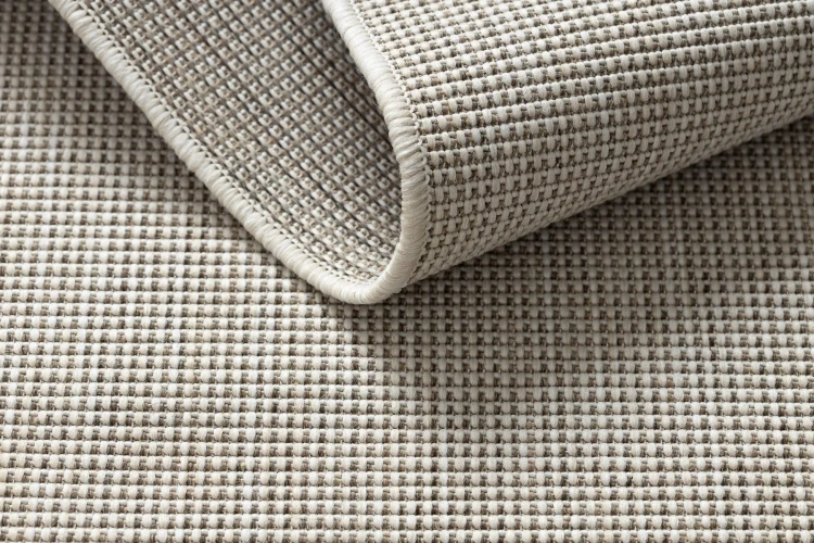 Sznurkowy dywan w odcieniu taupe, odporny na warunki atmosferyczne, idealny na taras i balkon.