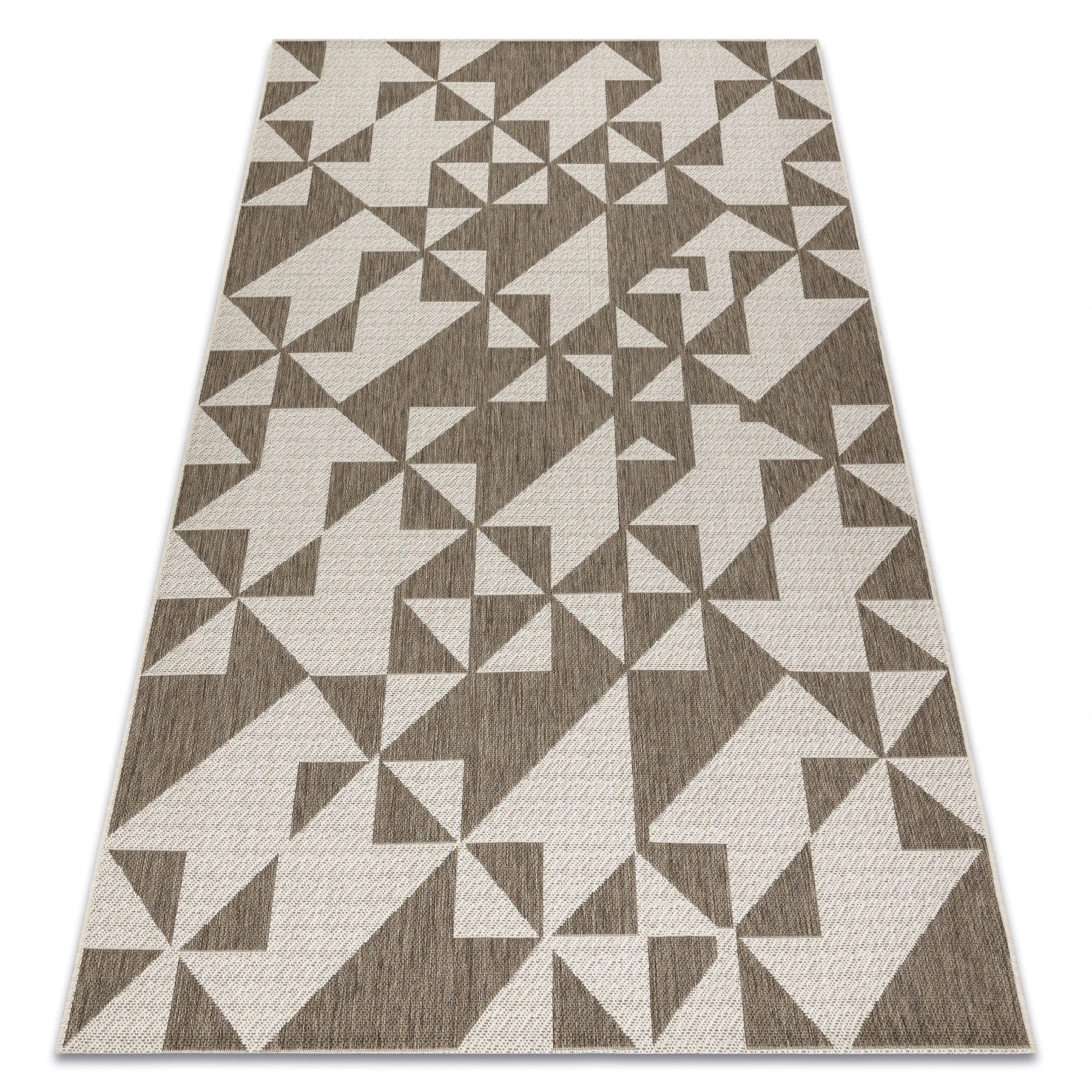 Sznurkowy dywan w odcieniu taupe, odporny na warunki atmosferyczne, idealny na taras i balkon.