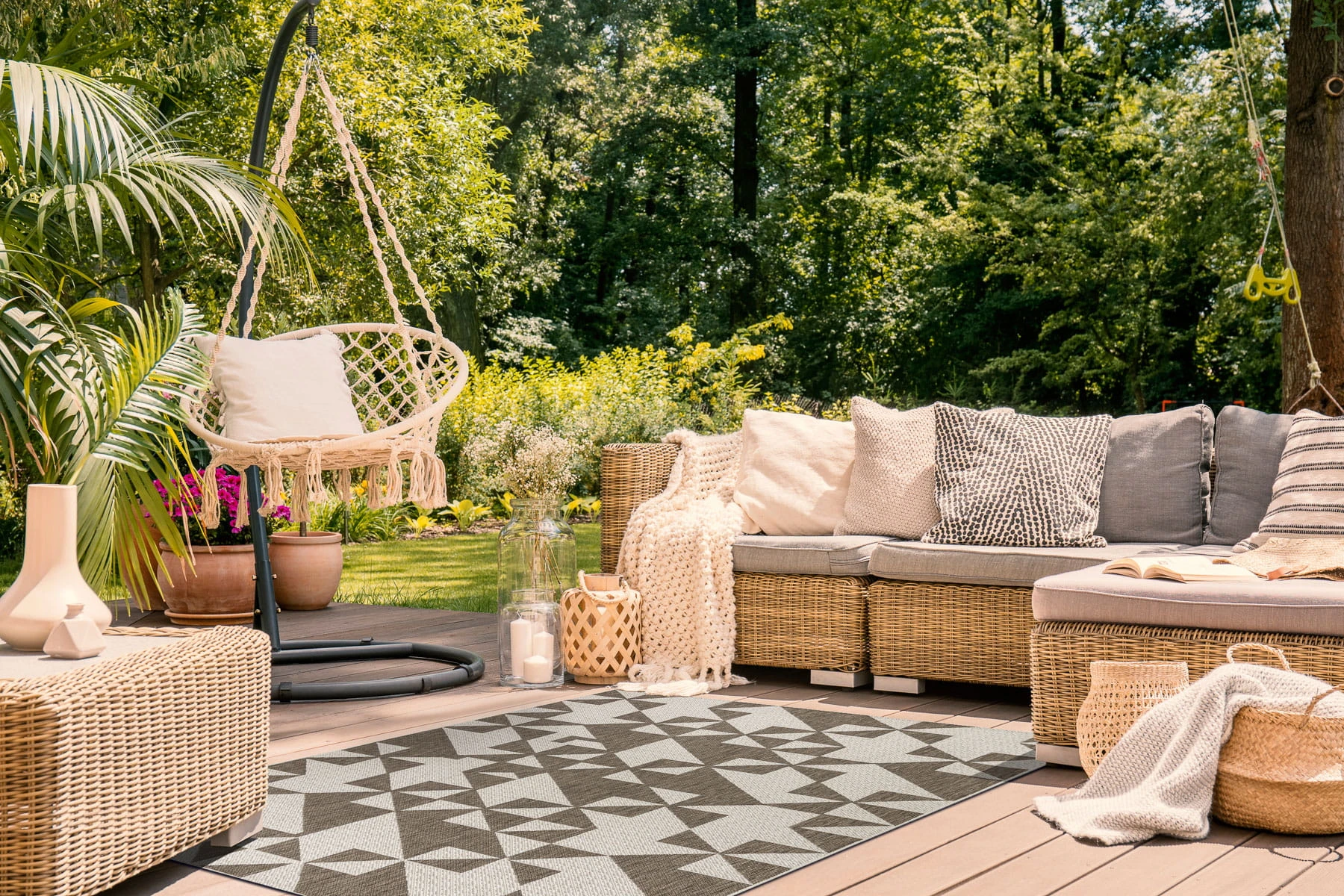 Sznurkowy dywan w odcieniu taupe na Twoim tarasie