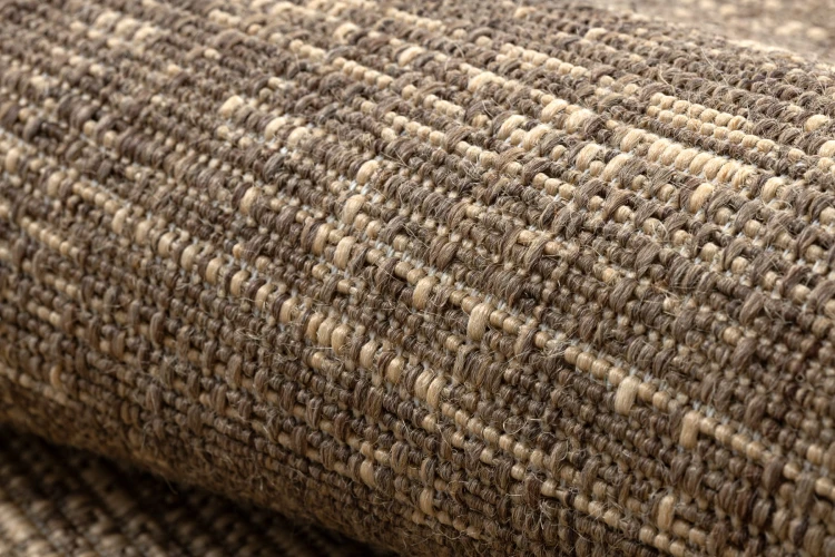 Sznurkowy dywan w odcieniach brązu, odporny na warunki atmosferyczne, idealny na taras i balkon.