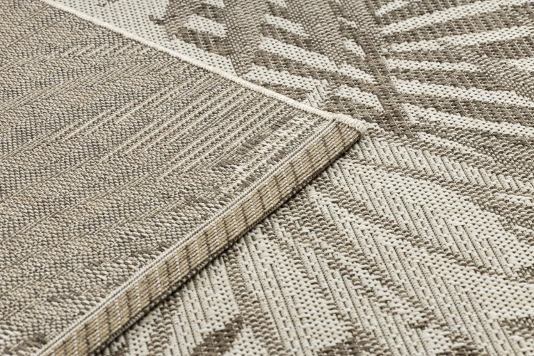 Beżowo-szary dywan z motywem tropikalnych liści, który ożywi korytarz naturalnym akcentem w egzotycznym stylu.