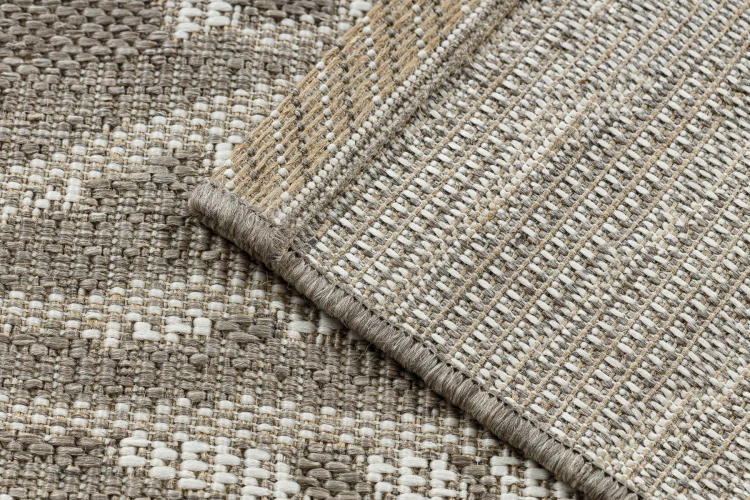 Sznurkowy dywan w odcieniu beżu z motywem liści dżungli, odporny na warunki atmosferyczne, idealny na taras i balkon.