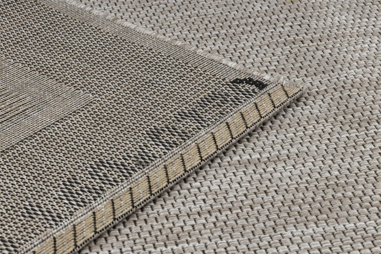 Sznurkowy dywan w odcieniach srebra, odporny na warunki atmosferyczne, idealny na taras i balkon.