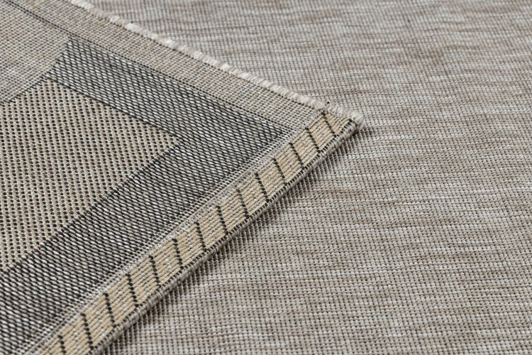 Sznurkowy dywan w odcieniu srebra, odporny na warunki atmosferyczne, idealny na taras i balkon.