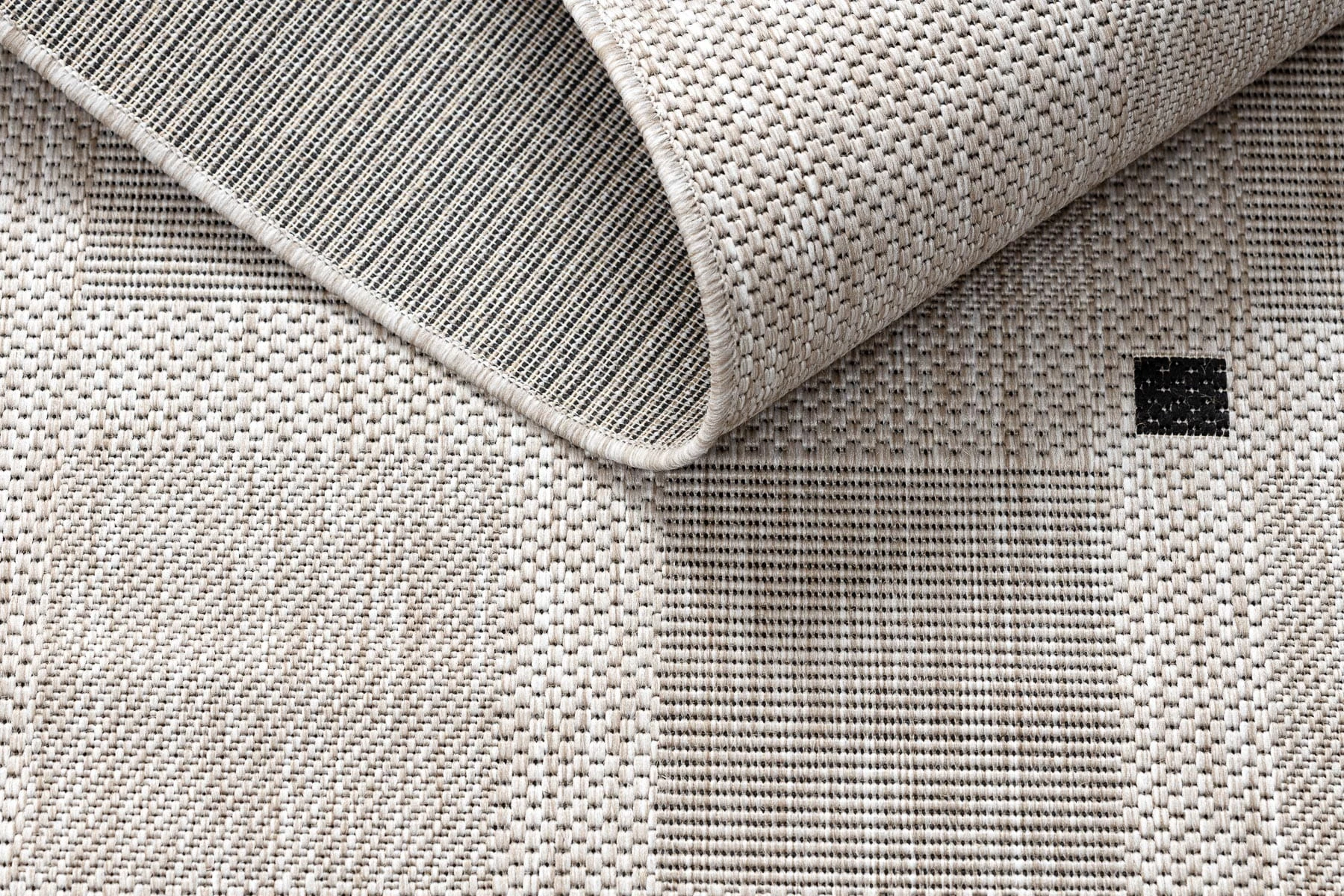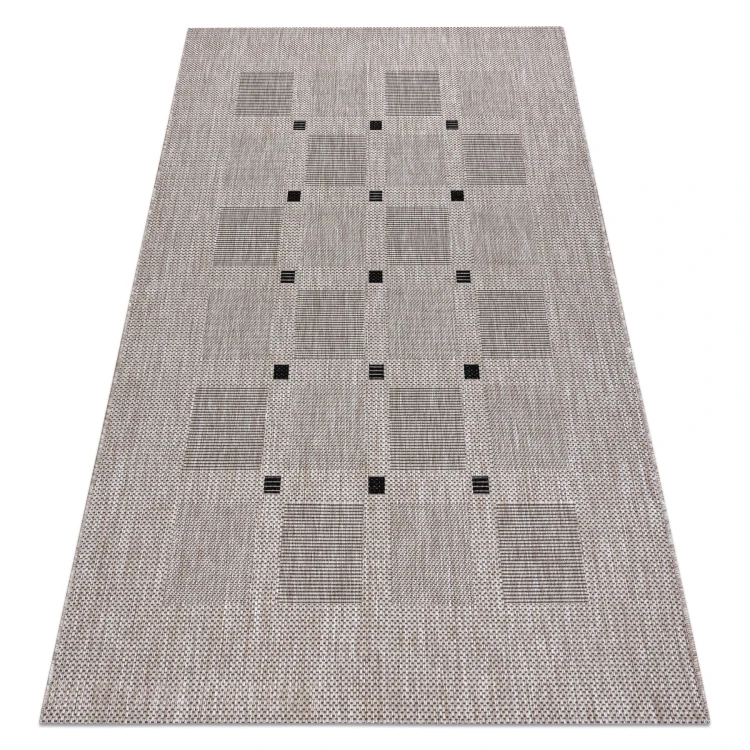 Sznurkowy dywan w odcieniach srebra, odporny na warunki atmosferyczne, idealny na taras i balkon.