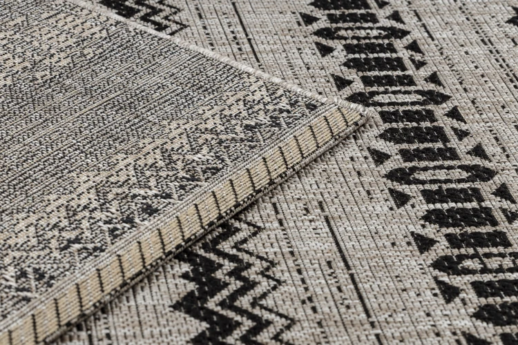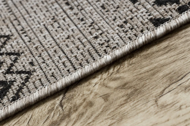 Srebrny dywan sznurkowy z tradycyjnym wzorem, który nadaje korytarzom elegancki charakter i doskonale łączy klasykę z nowoczesnością.
