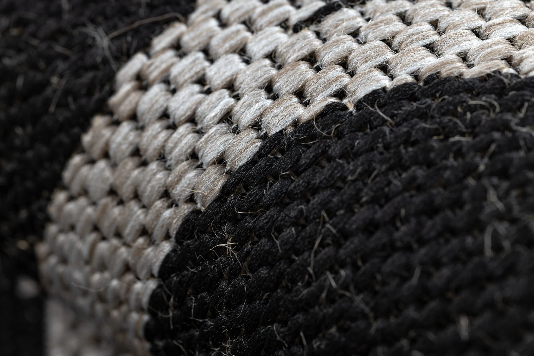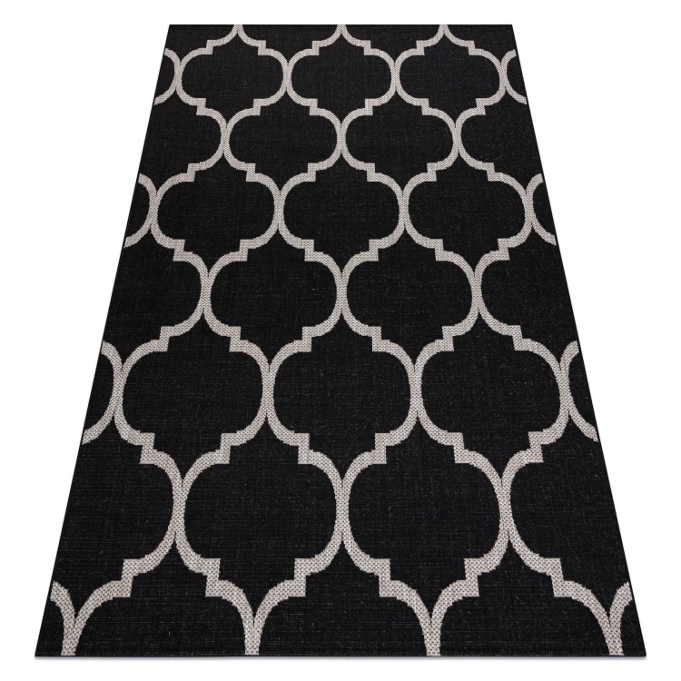 Sznurkowy dywan z marokańską koniczyną w odcieniach czerni i srebra, odporny na warunki atmosferyczne, idealny na taras i balkon.