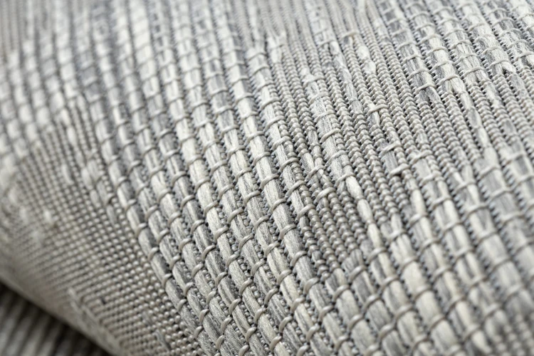 Sznurkowy dywan w odcieniach szarości i beżu, odporny na warunki atmosferyczne, idealny na taras i balkon.