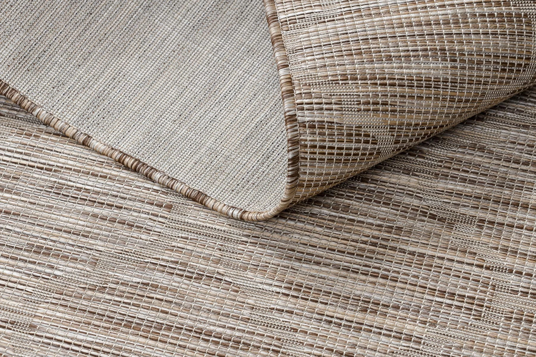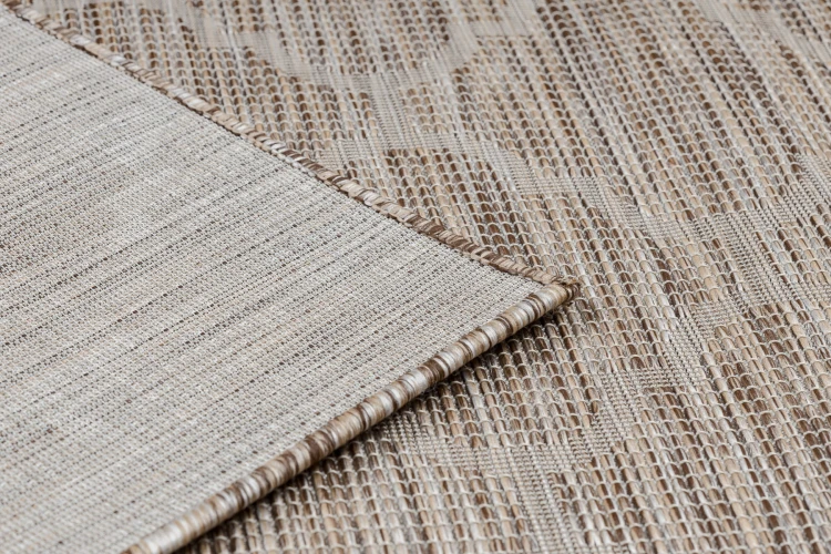 Sznurkowy dywan w odcieniu beżu z marokańską koniczyną, odporny na warunki atmosferyczne, idealny na taras i balkon.