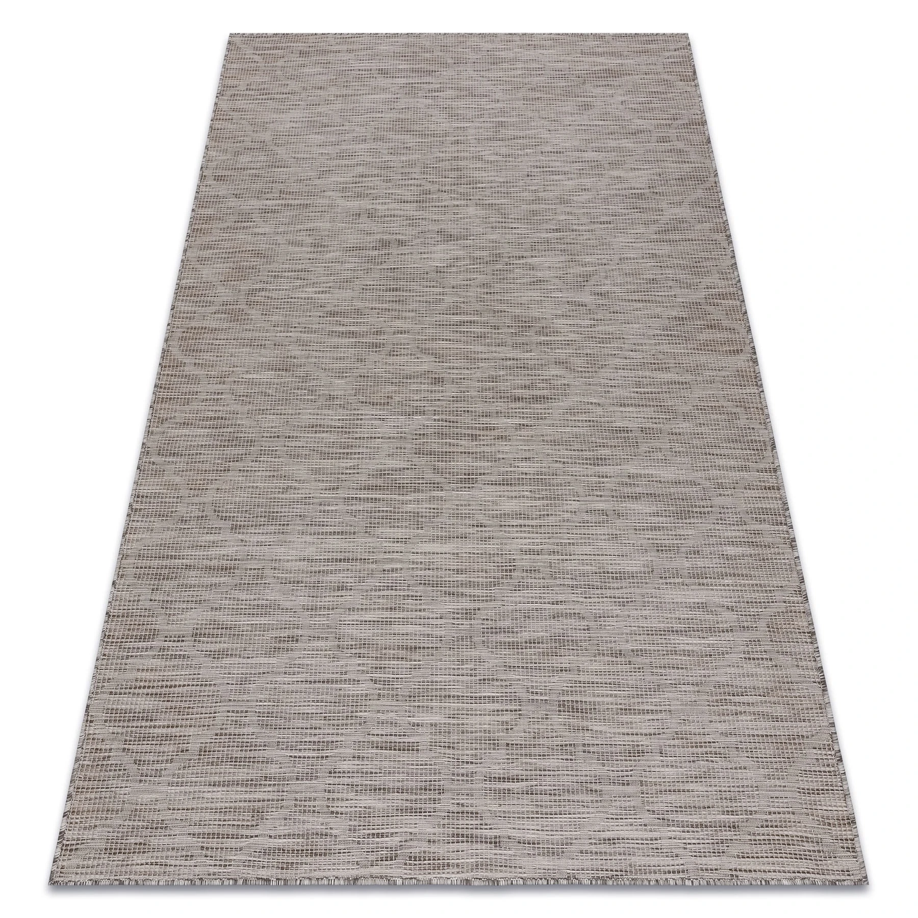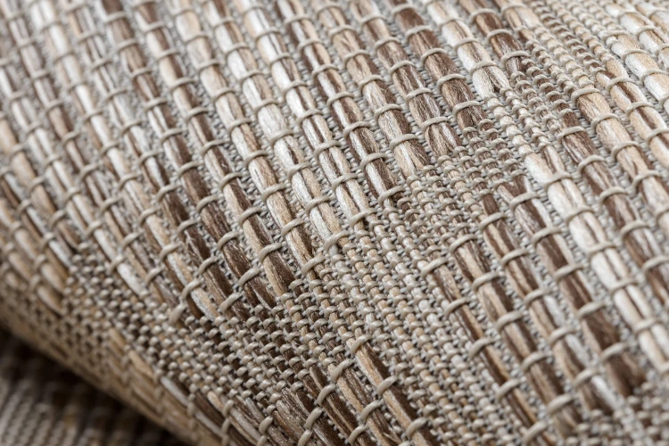 Sznurkowy dywan w odcieniu beżu z marokańską koniczyną, odporny na warunki atmosferyczne, idealny na taras i balkon.