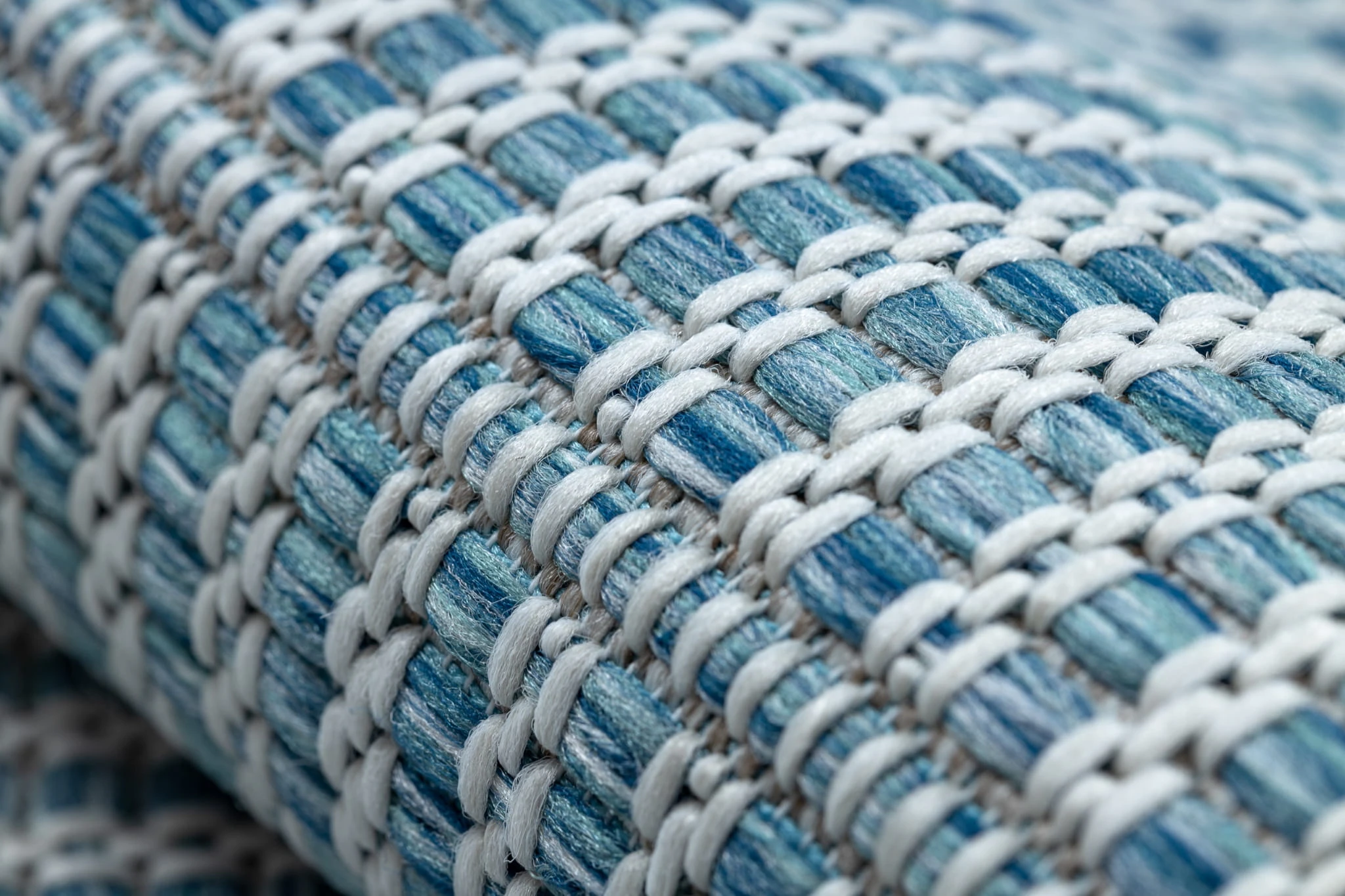 Sznurkowy dywan w odcieniach niebieskiego na Twoim tarasie