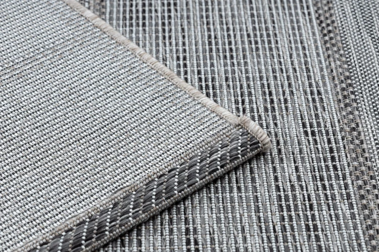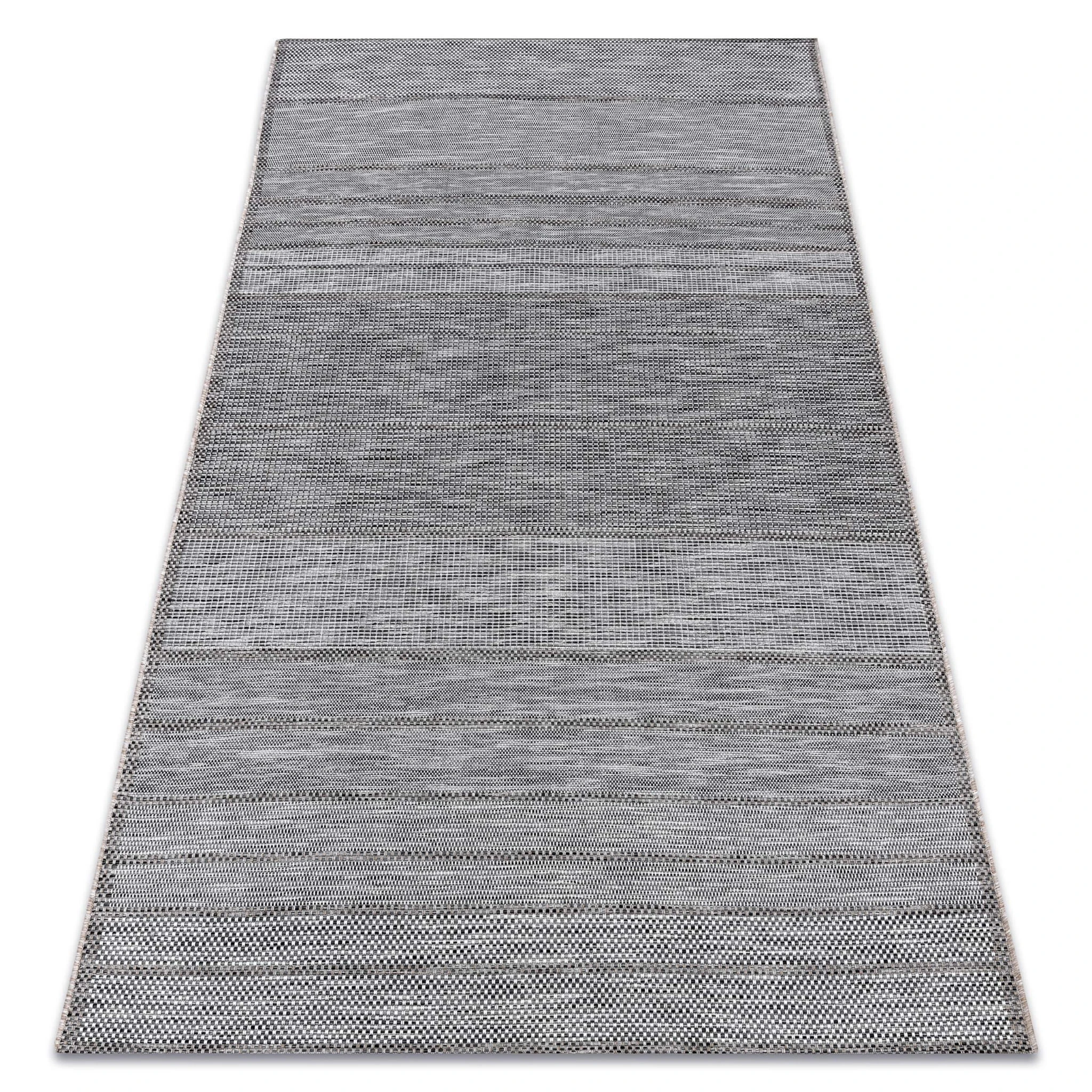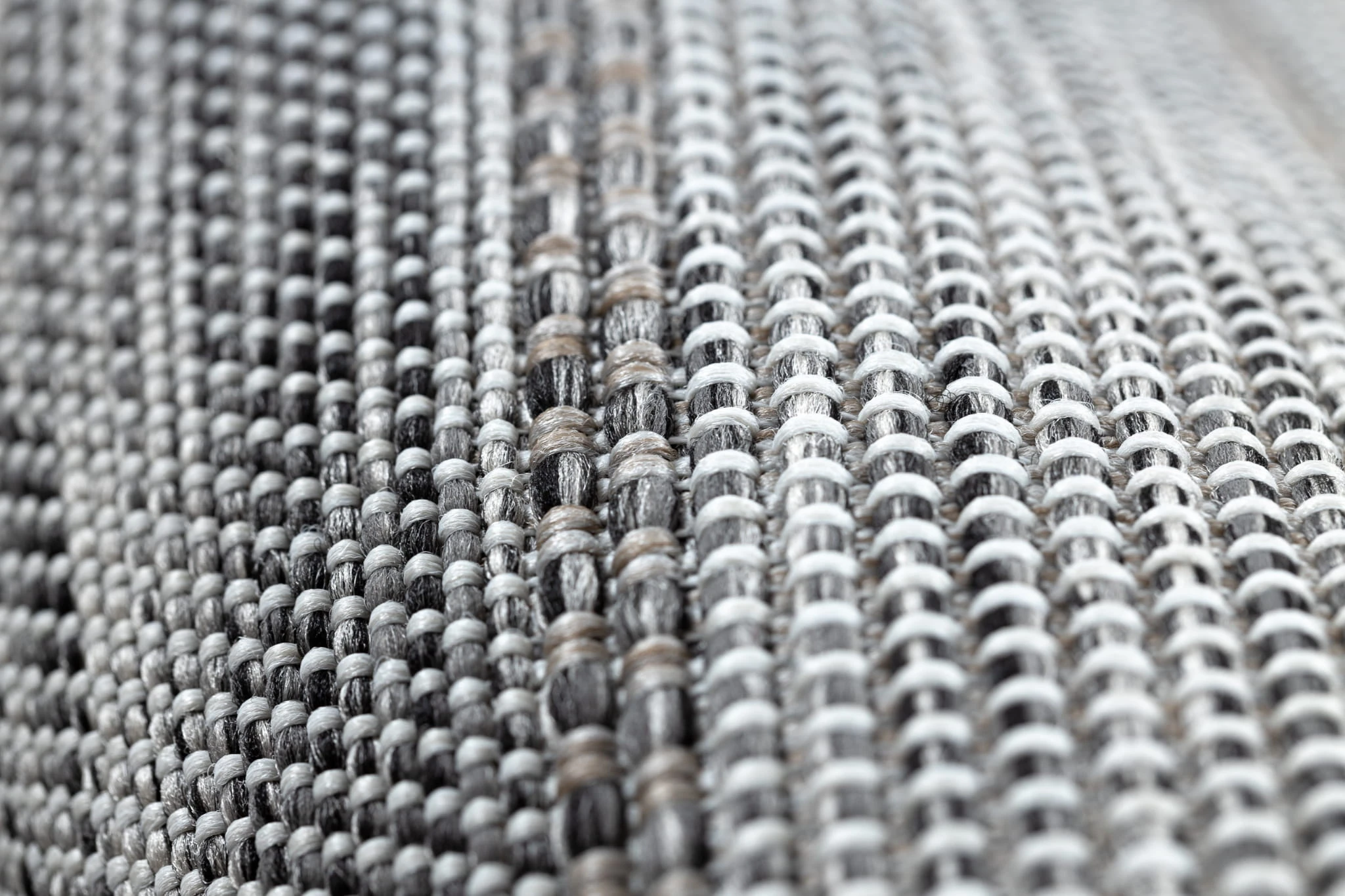 Srebrny dywan w paski, który doda salonowi nowoczesny charakter i subtelnie podzieli przestrzeń.