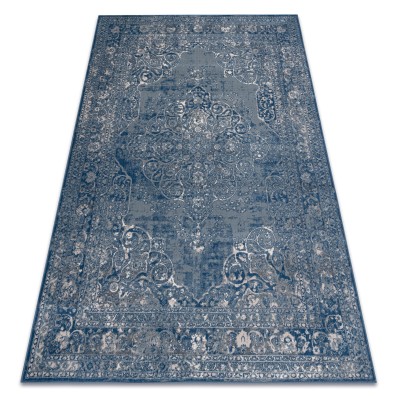 Sznurkowy dywan w odcieniach niebieskiego i srebrnego, odporny na warunki atmosferyczne, idealny na taras i balkon.