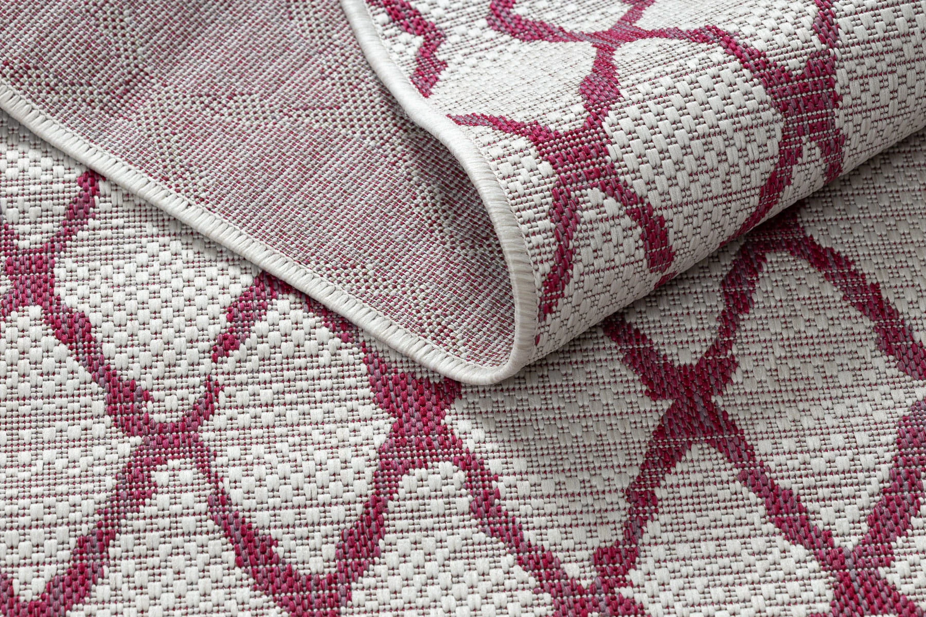 Różowy dywan z wzorem w kratkę, który ożywi korytarz ciepłym, energetycznym akcentem.