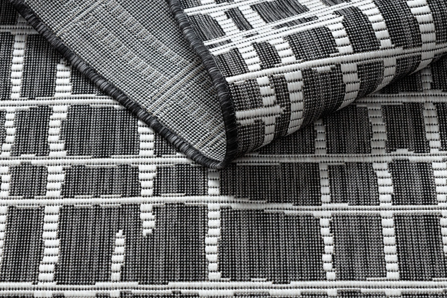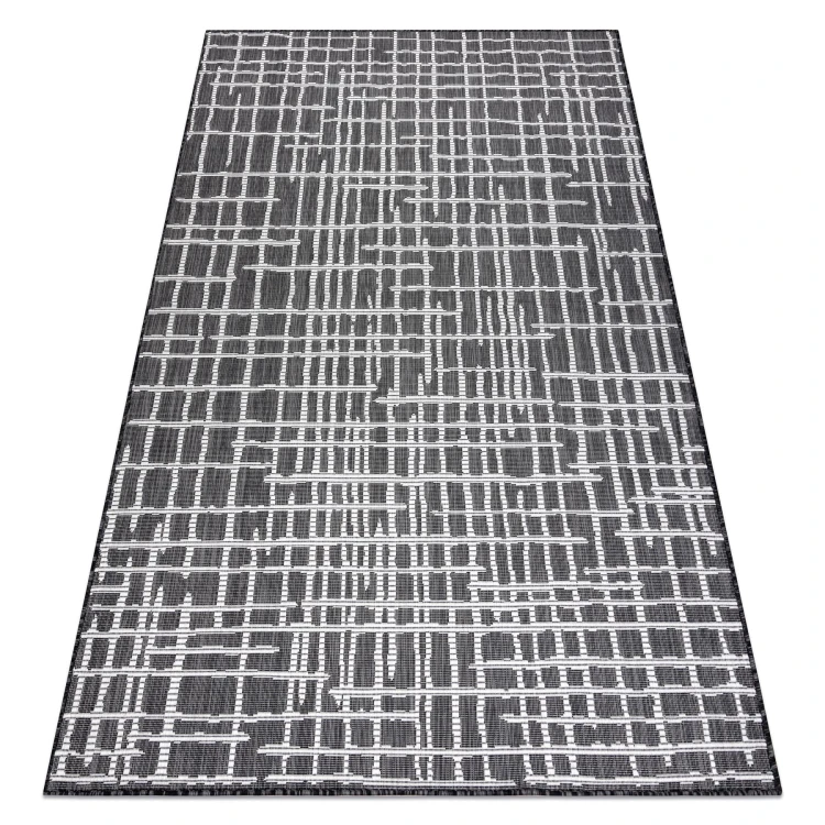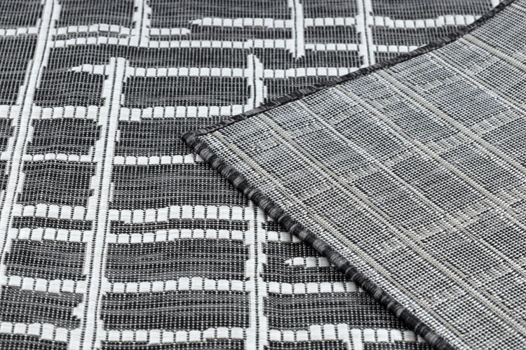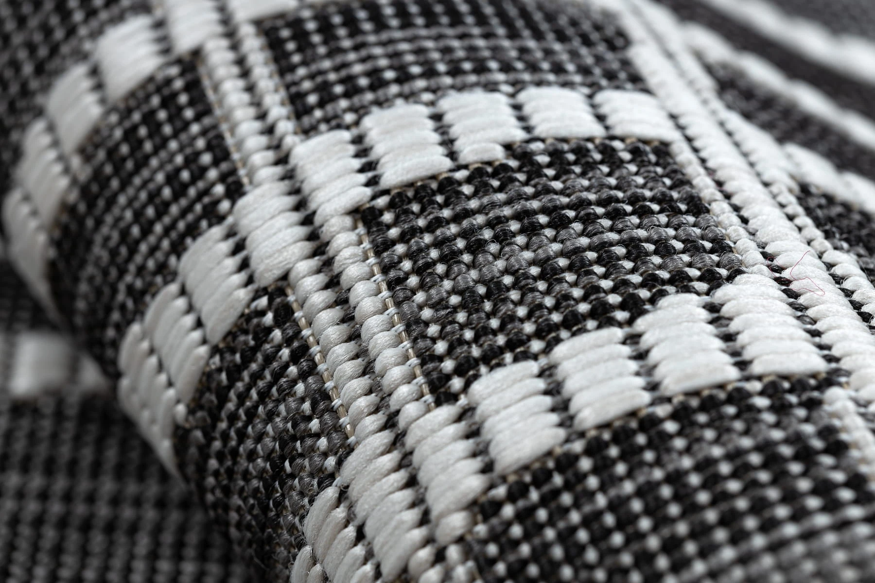 Czarno-kremowy dywan sznurkowy z wzorem kratki, który doda salonowi eleganckiego charakteru w ponadczasowym stylu.