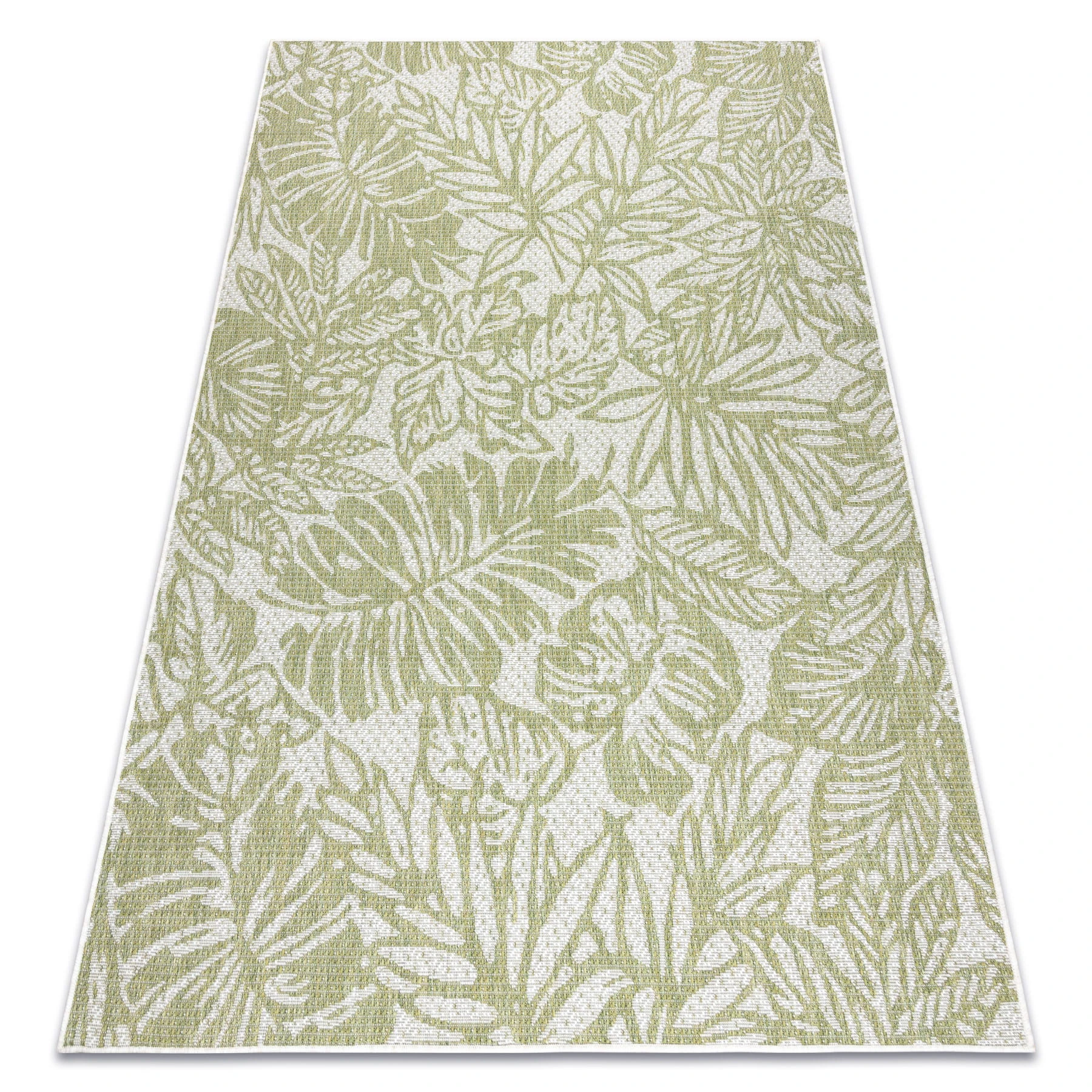 Kremowy dywan z zielonym motywem roślinnym, który wprowadzi do wnętrza naturalną świeżość i spokojny charakter.