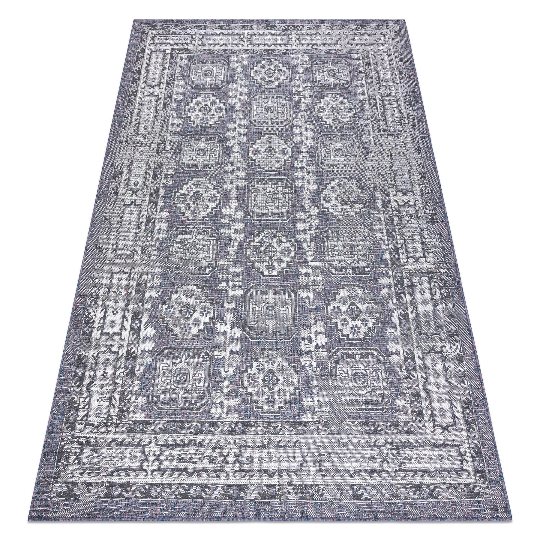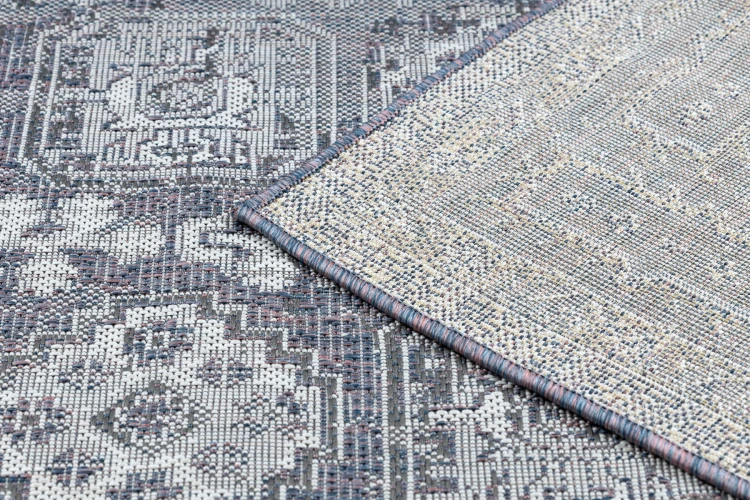 Sznurkowy dywan w odcieniach szarości, odporny na warunki atmosferyczne, idealny na taras i balkon.