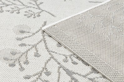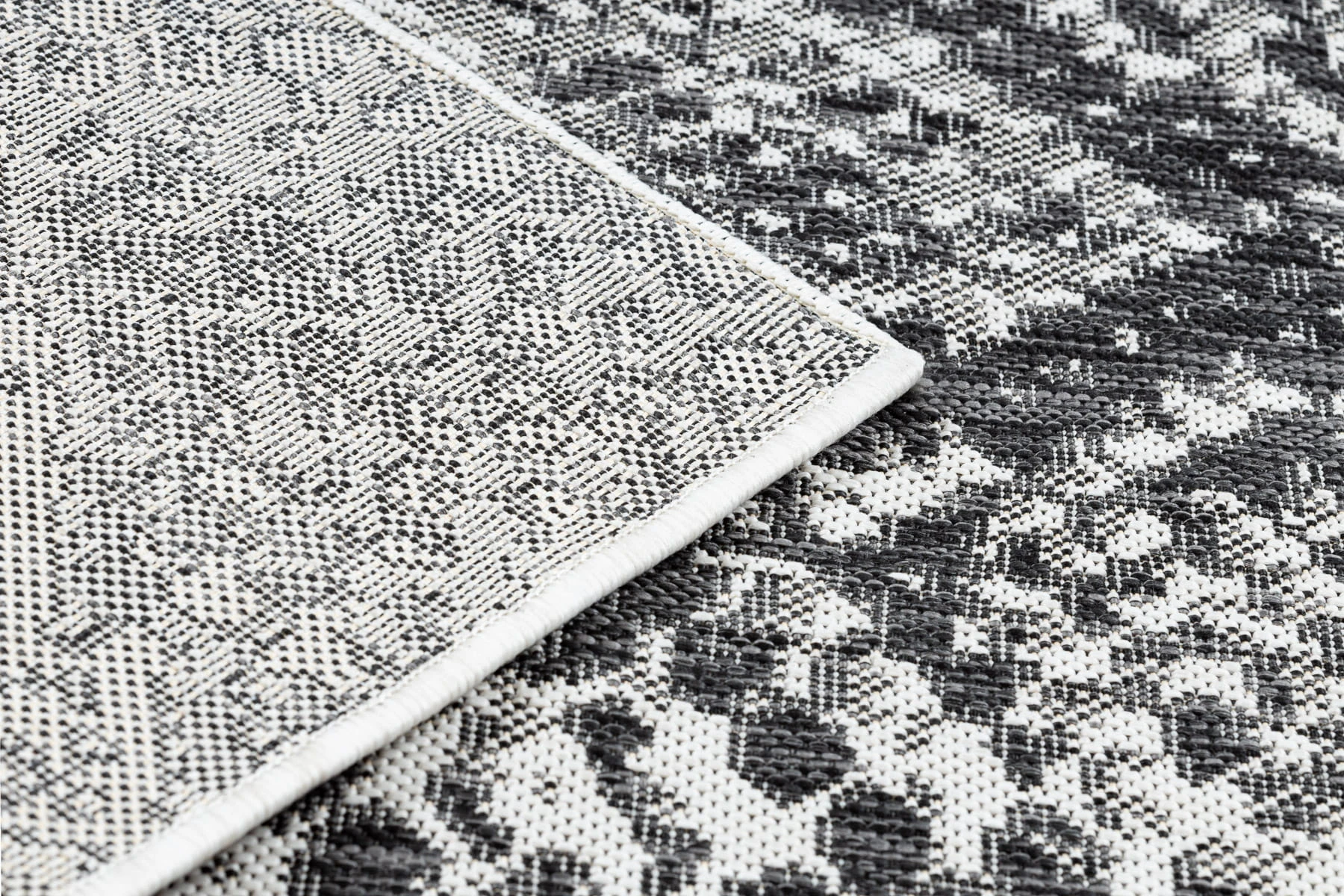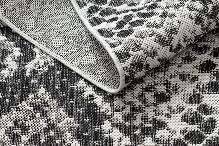 Sznurkowy dywan w odcieniach szarości, odporny na warunki atmosferyczne, idealny na taras i balkon.