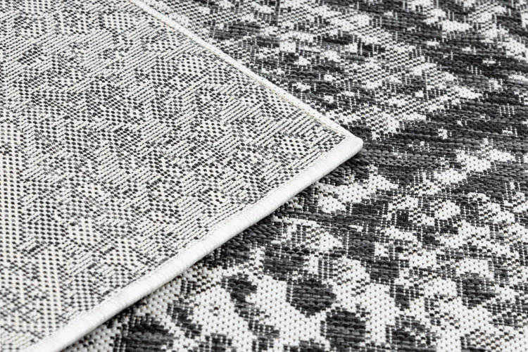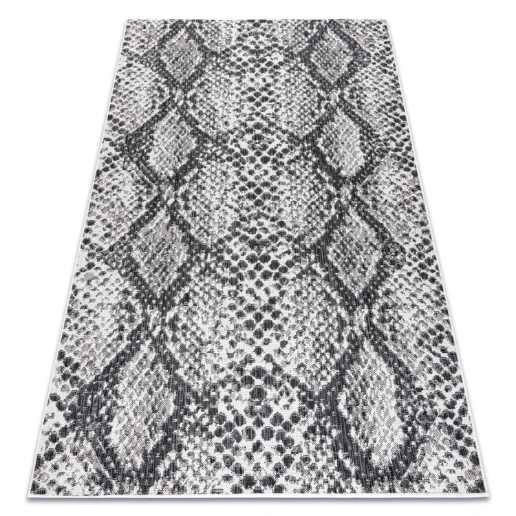 Szary dywan ze wzorem skóry węża, który wniesie do salonu nowoczesny charakter i naturalny akcent.