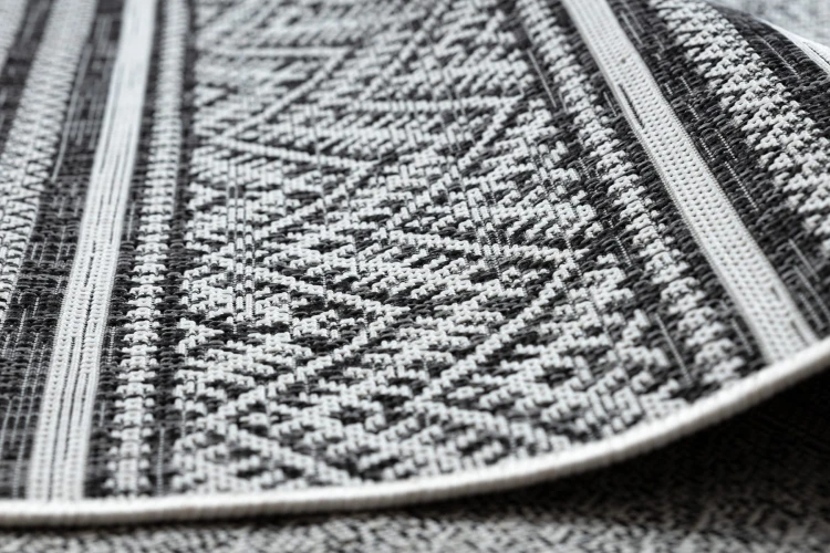 Czarno-ecru dywan sznurkowy z abstrakcyjnym wzorem zygzaka, który doda salonowi nowoczesny charakter.