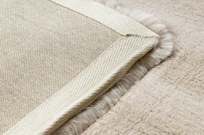 Jednokolorowy beżowy dywan shaggy, który wprowadzi do salonu przytulną atmosferę i stonowaną elegancję.