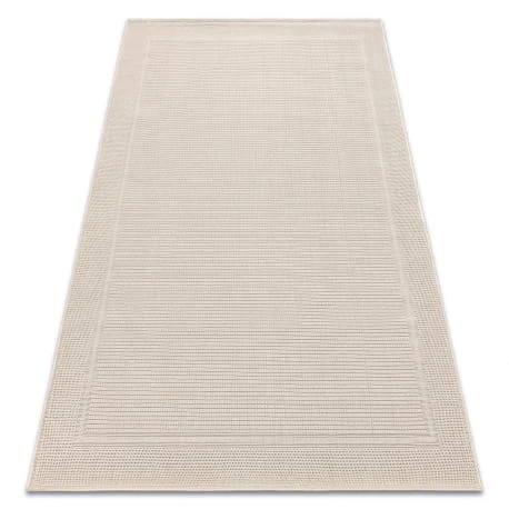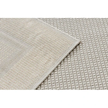 Sznurkowy dywan w odcieniach beżu, odporny na warunki atmosferyczne, idealny na taras i balkon.