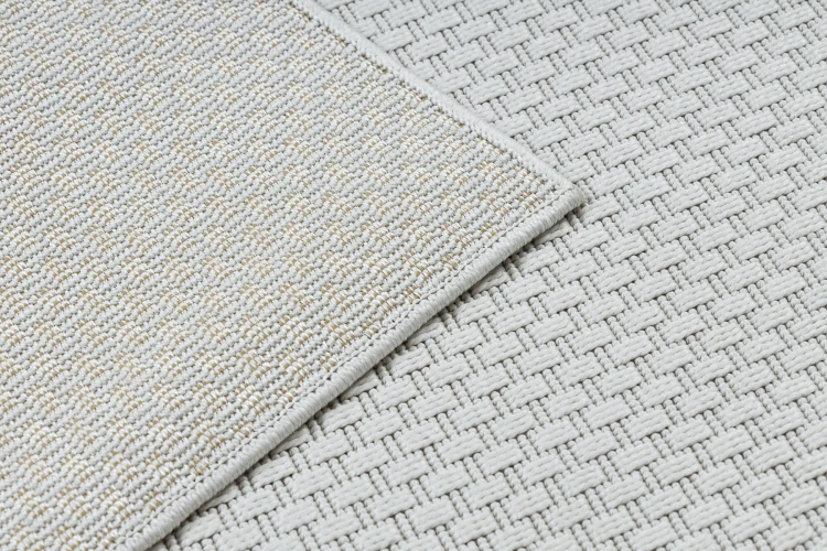 Beżowy dywan jednokolorowy ze sznurkową fakturą, który wprowadzi do korytarza subtelną elegancję i ciepły akcent.